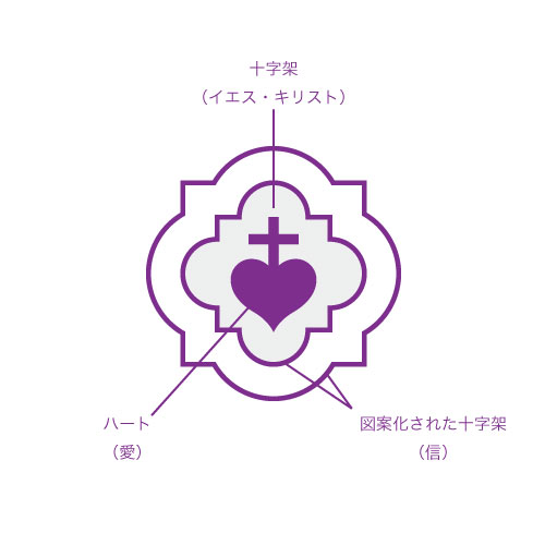 学院章には、「マリアを母として、幼な子となられた神の愛の真髄を示すよう御父にまねかれている」幼きイエズス修道会会員の使命を生きながら、生涯を日本の地に捧げ尽くした創立者たちの姿が刻み込まれています。