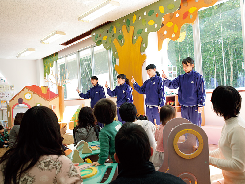 歴史とともに歩んできた “和歌山信愛”からの卒業生は数多く、特に和歌山信愛女子短期大学では長年にわたって幼稚園教諭・保育士・栄養士などの専門職業人材の養成と、金融・商業・医療などの分野で地域コミュニティの基盤となる人材の養成に努めてきたことから、入学者の95%以上が県内出身者であり、そのほとんどが地元就職するなど県内定着率が高いのが特長です。