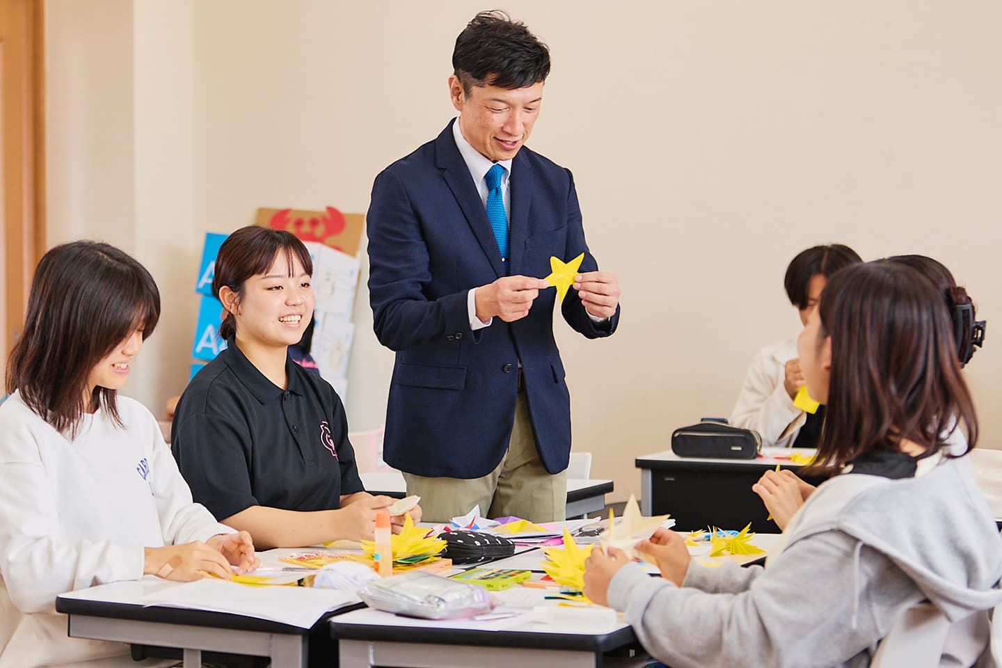 子どもと地域の未来に貢献できるよう、多数の地域連携科目「地域力再生論」「地域連携フィールド学習」などを用意しています。地域に欠かせない存在となり、「ずっとここにいてほしい」と思ってもらえる先生が理想です。