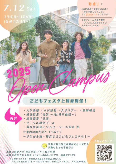 さらに、今年度初めてオープンキャンパスに参加するお友達と一緒に予約してくれた方には当日クオカードをプレゼント!