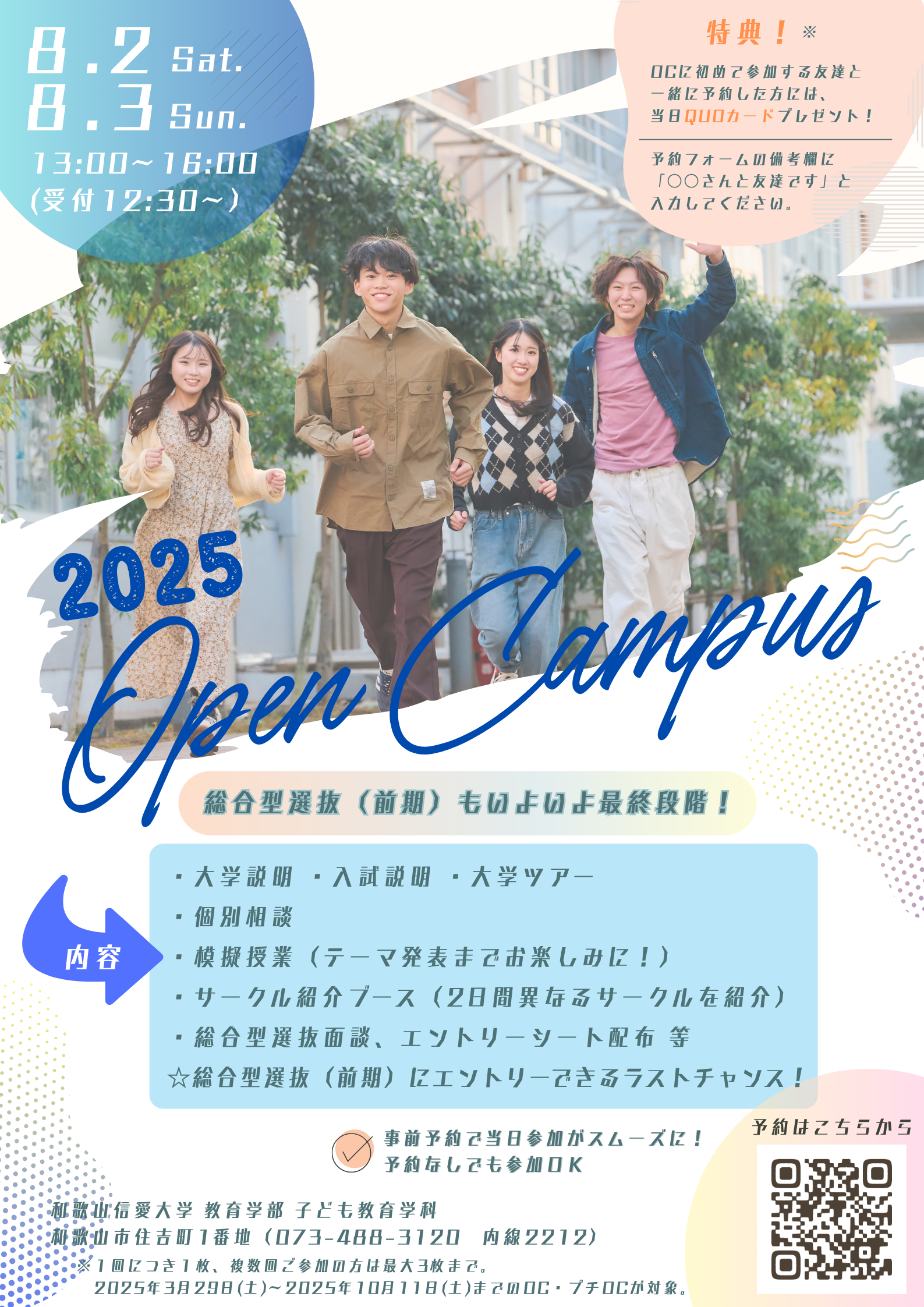 8月2日(土)・3日(日)オープンキャンパス開催!総合型選抜(前期)のラストチャンス!!