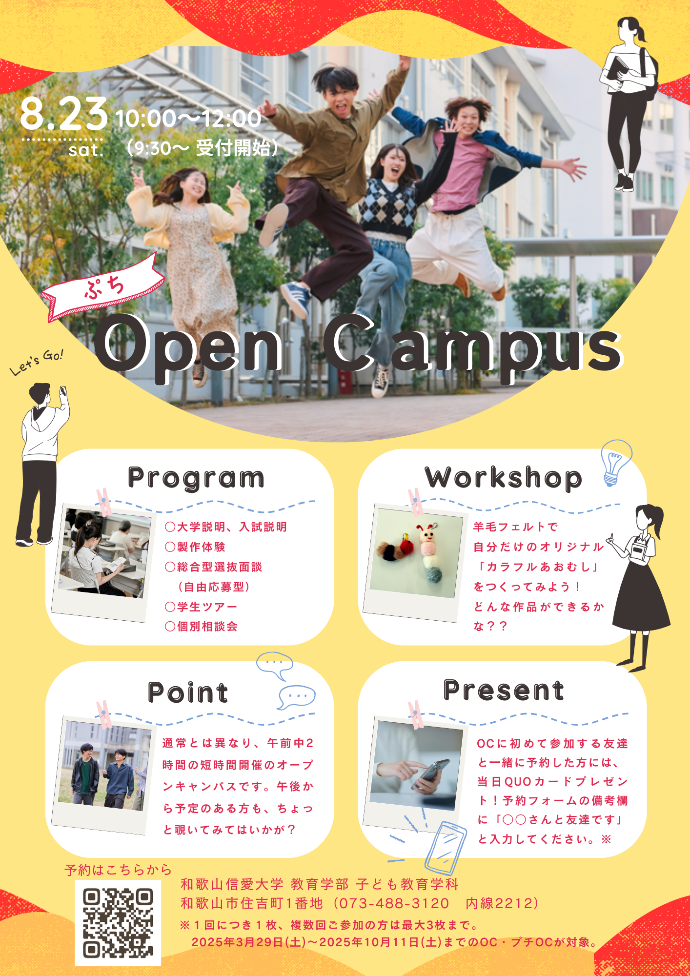 また、今年度オープンキャンパスに初めて参加するお友達と一緒に参加してくれた方には(要予約)クオカードをプレゼント。