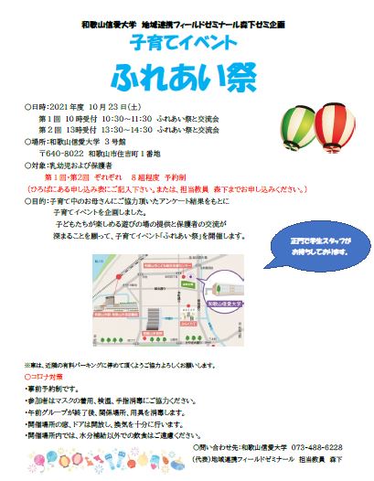 このイベントは、和歌山信愛大学の2年生科目「地域連携フィールドゼミナール」の森下ゼミの学生が授業の一環として企画・運営します。