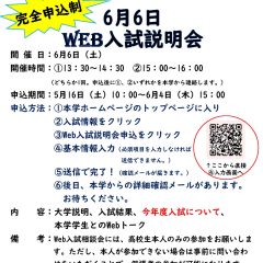【終了しました】【緊急】6月6日(土)Web入試説明会に変更!(完全申込制)