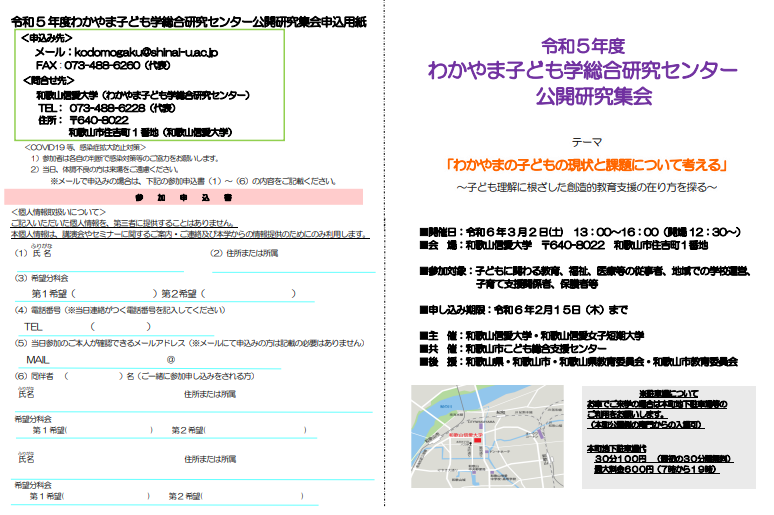 3. 令和5年度わかやま子ども学総合研究センター公開研究集会「わかやまの子どもの現状と課題について考える」を開催します