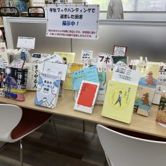 昨年学生達が書店に行き、選んだ図書を図書館で再展示しています。反響が大きく、利用も増えているため展示期間を延長しています。今年もブックハンティングを予定していますので、詳細が決まりましたらお知らせします!