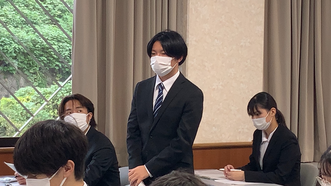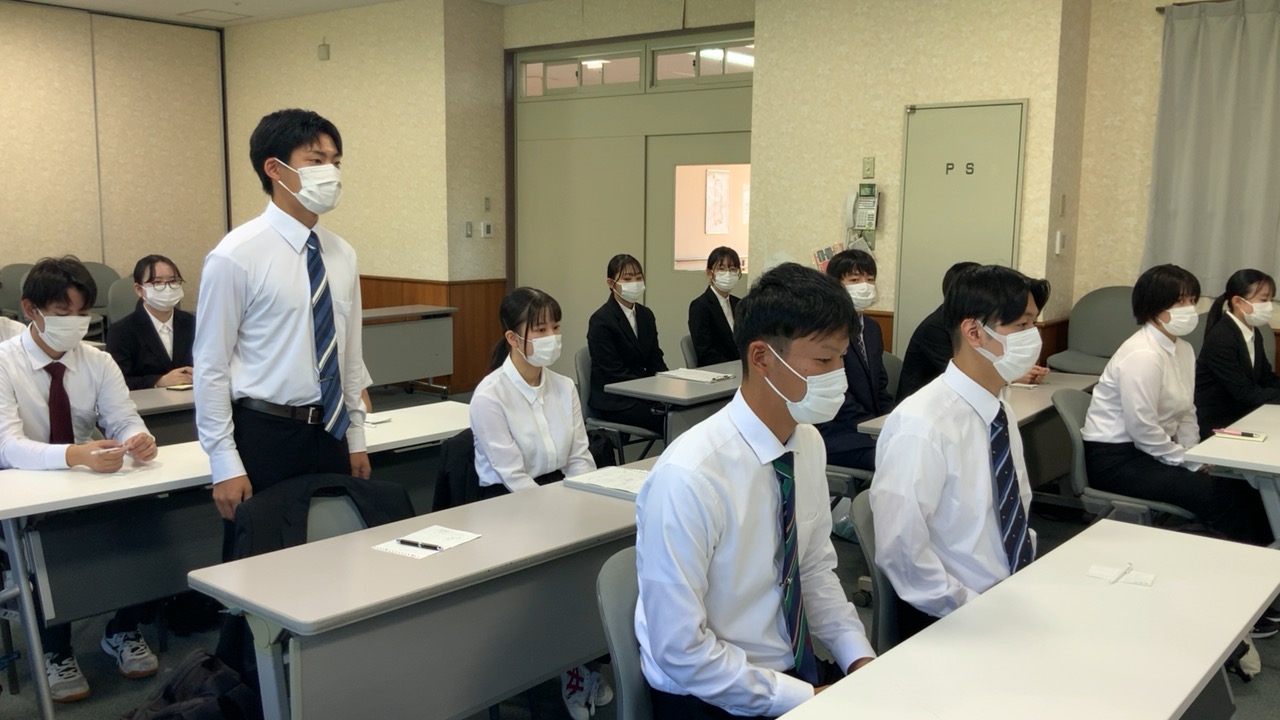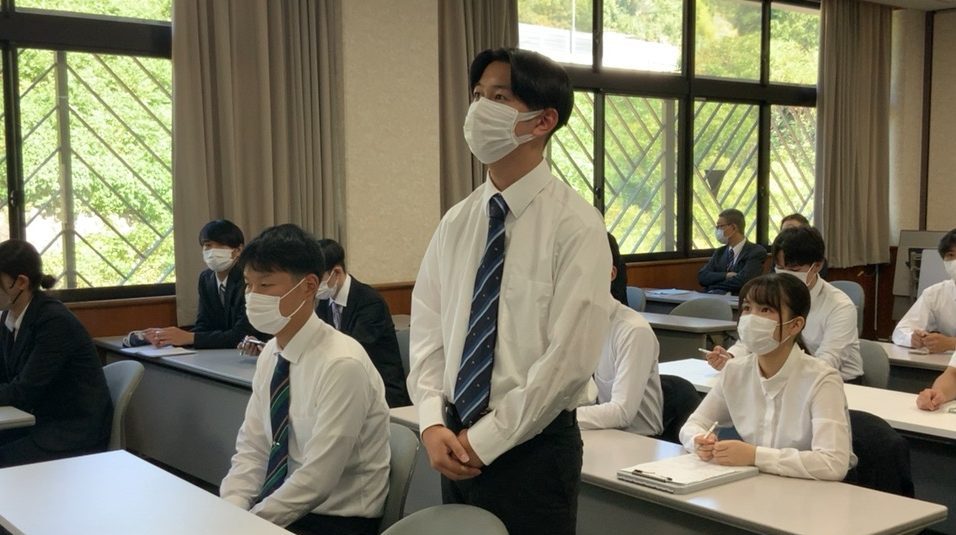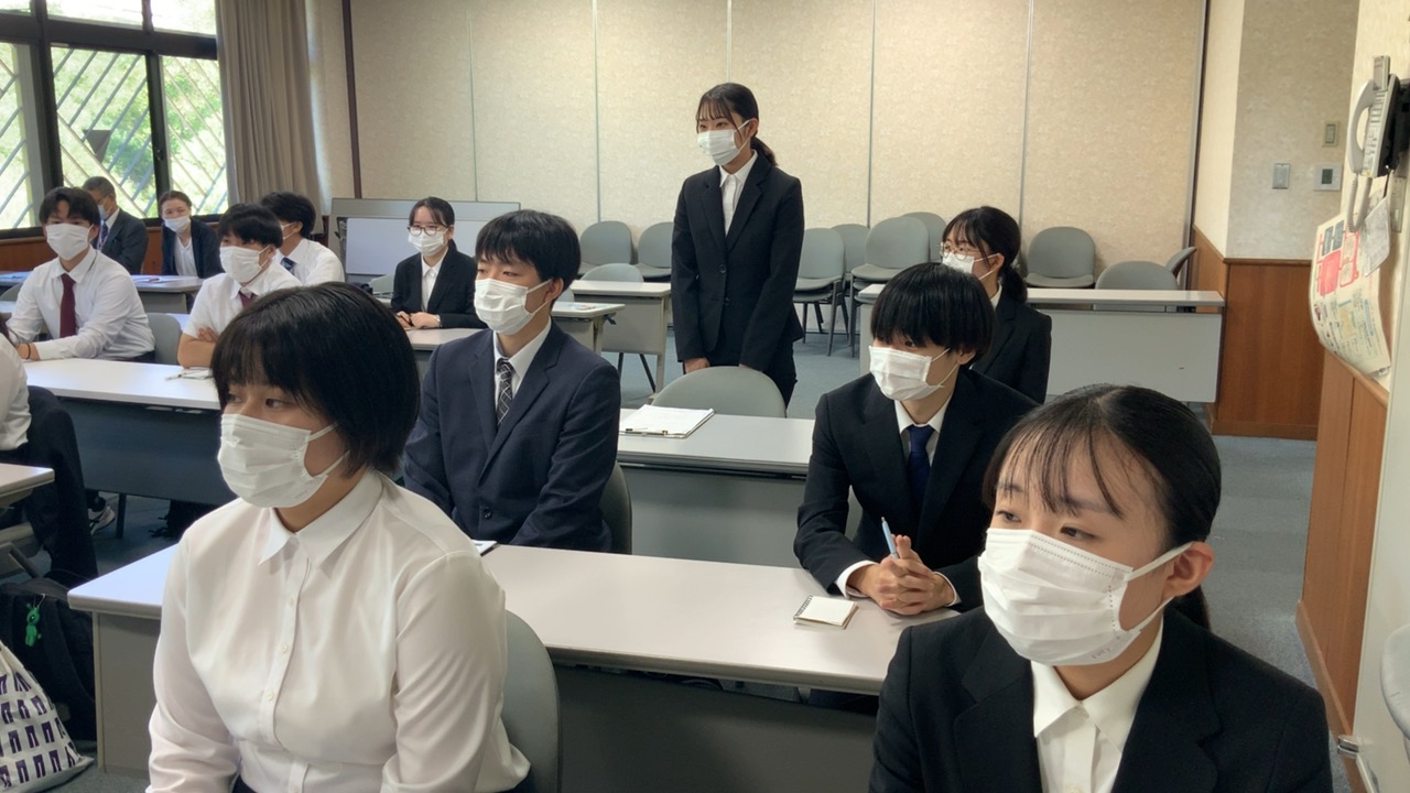 学生のほとんどが、初めての特別支援学校訪問であったため、教員の人数や、子どもとの関わり方、教材や廊下の掲示物に至るまで、次々に質問が出されました。時間は足らず、まだまだ続きそうでしたが、午後の講義のため、急ぎ大学に戻りました。学生は、この学びをレポートにまとめ、さらに理解を深めていきます。