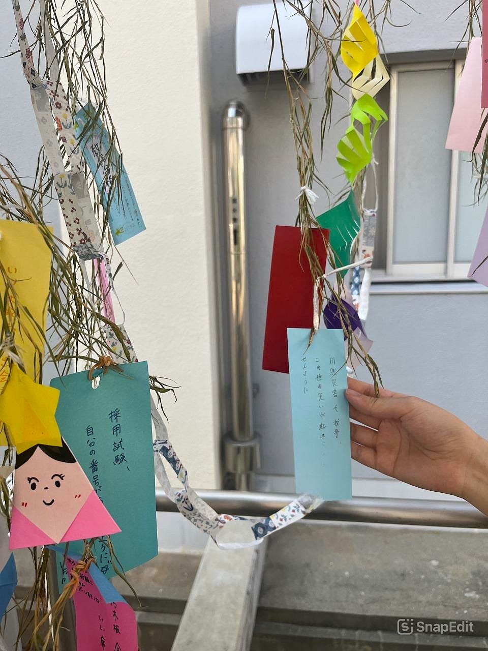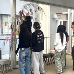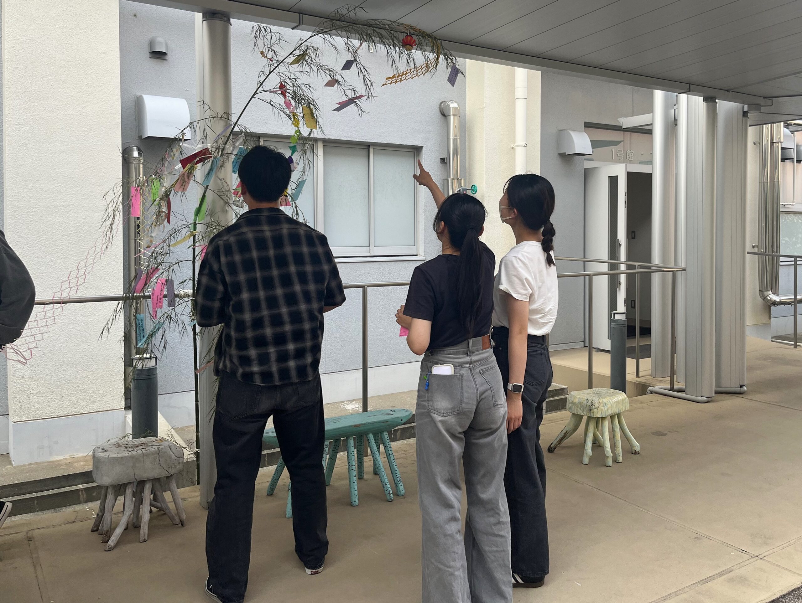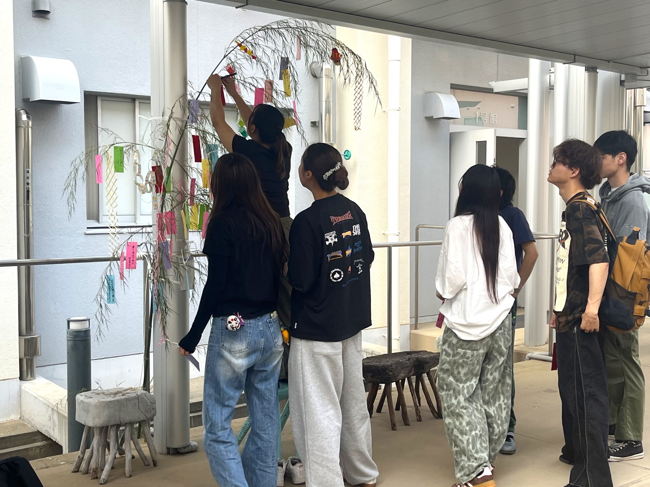2025年7月7日(月)、本日は七夕の日です。本学の中庭に先週から設置されている笹の葉にも、たくさんの七夕飾りが飾られていました。本学の学生たちの願いが書かれた短冊はもちろん、地域のこどもたちの願いが書かれた短冊もありました。