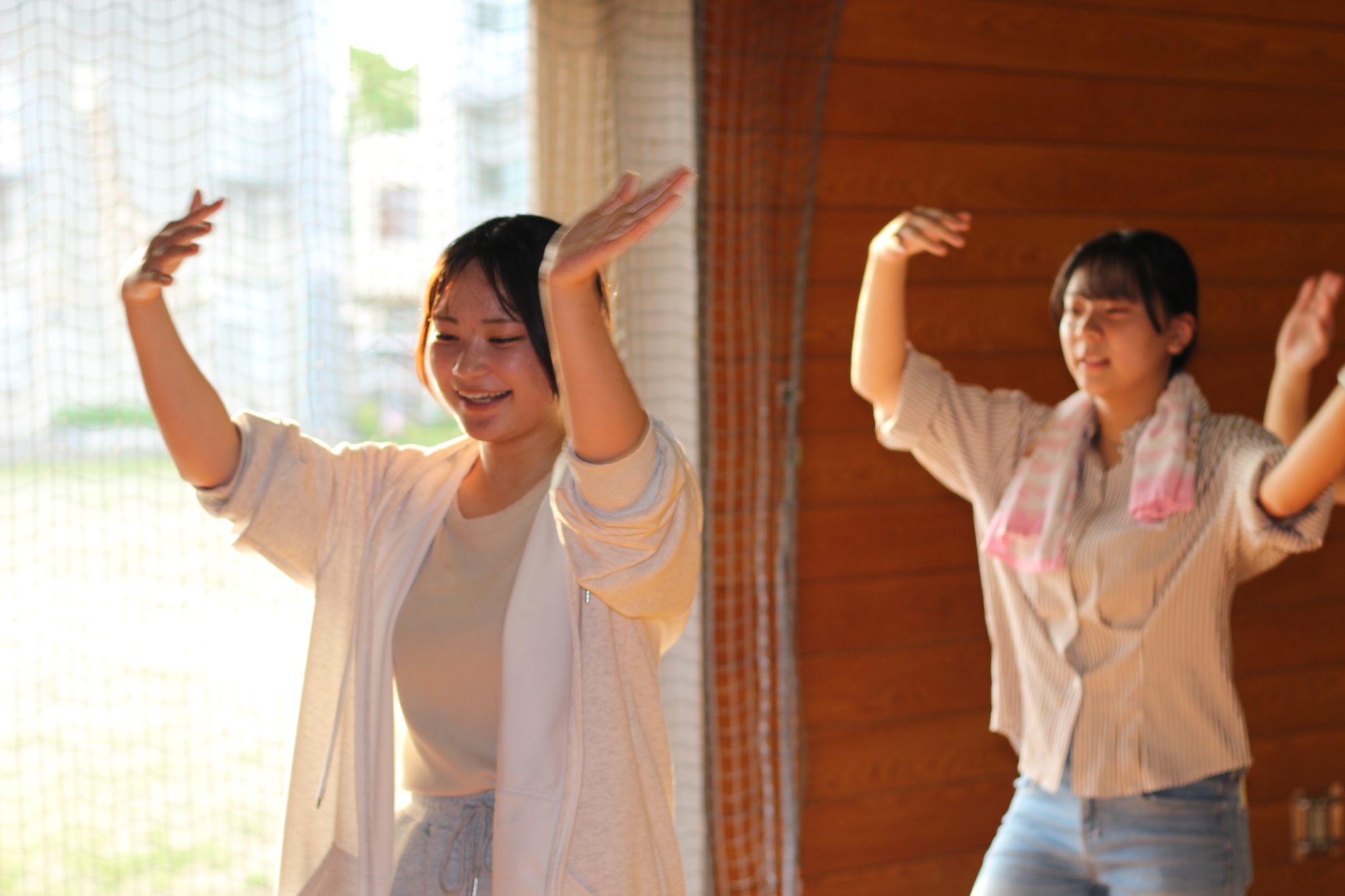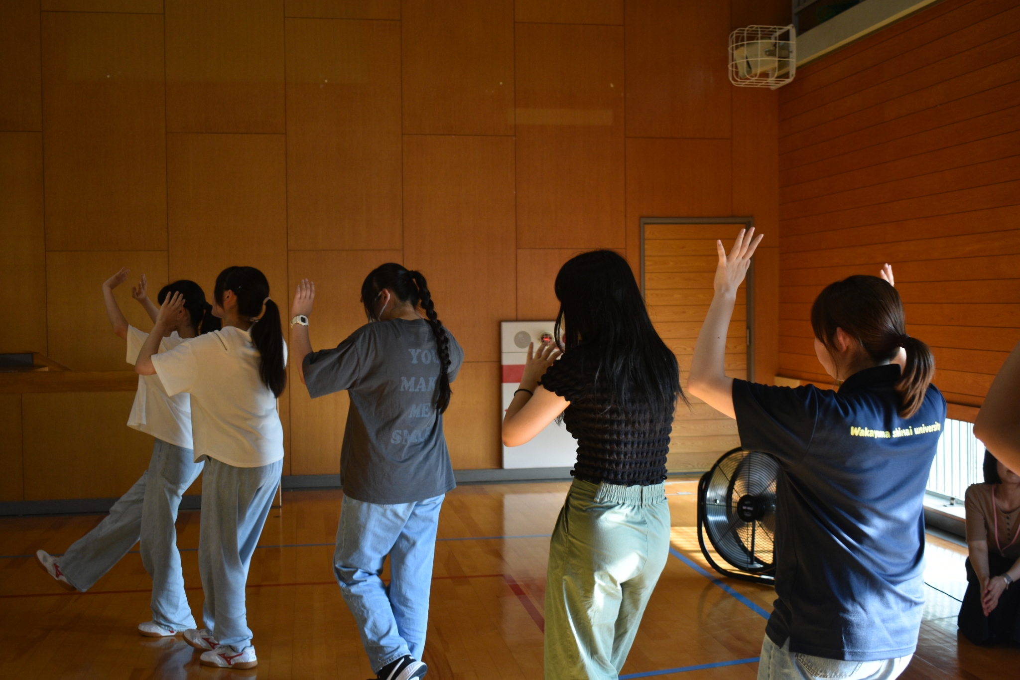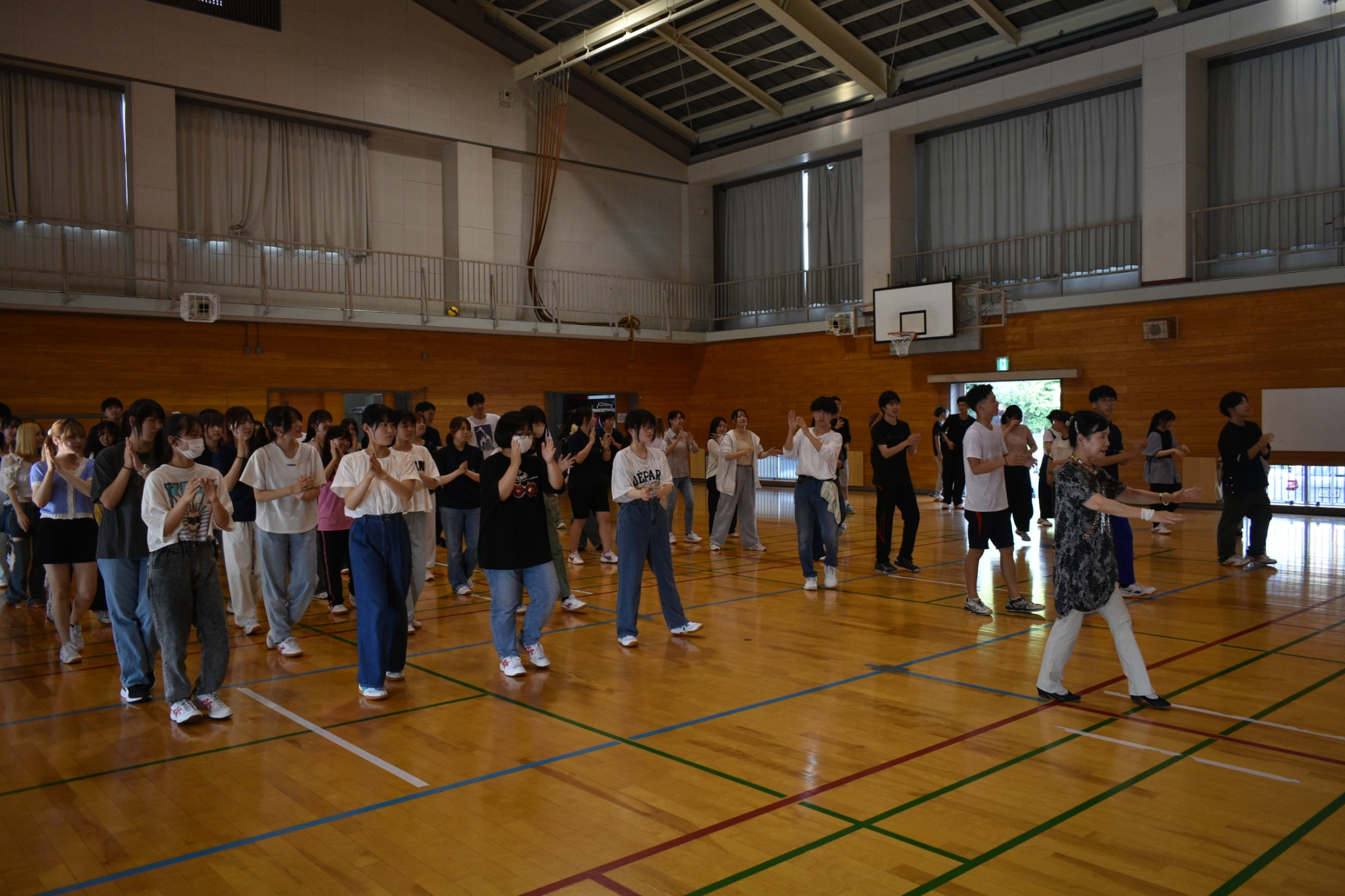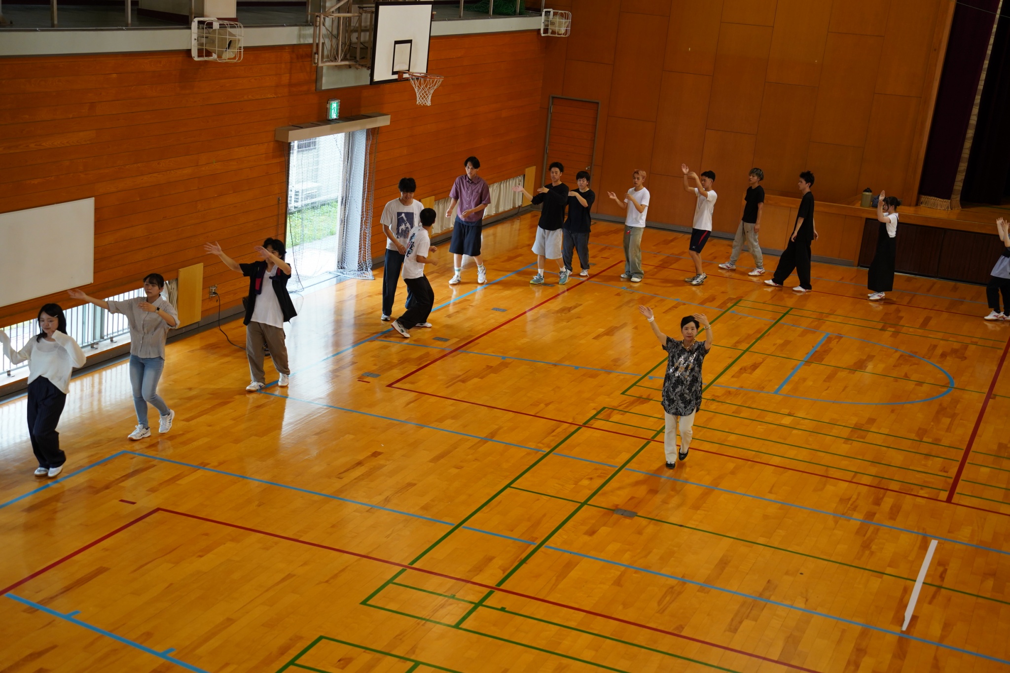 本番に向け、2025年716日(水)1715〜 踊り師の向井先生(和歌山市観光課)をお迎えし、踊り講習会を開催しました。 初めて「ぶんだら節」を踊る学生もおり、向井先生が丁寧に踊りのポイントを教えてくださいました。 上達は早く、音楽に合わせて2回踊る頃には、振り付けもしっかリマスターできていました。 最後に向井先生にも褒めていただき、本番に向け準備万端となりました。