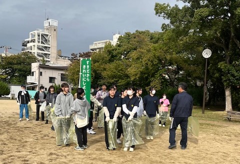 2025年10月26日(日)、昨年に引き続き本学学生有志と教職員で「まちなかおもてなし大清掃」に参加しました。和歌山市の要請で行われる本企画に、今回は市内の35の企業・団体約1,000名が参加し、大新公園~JR和歌山周辺エリアの清掃を行いました。