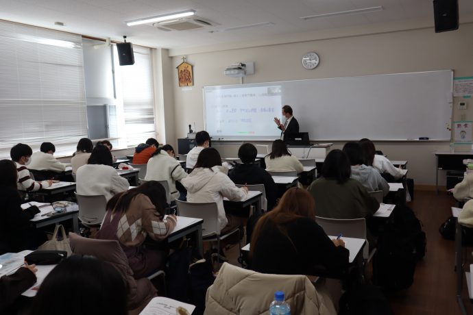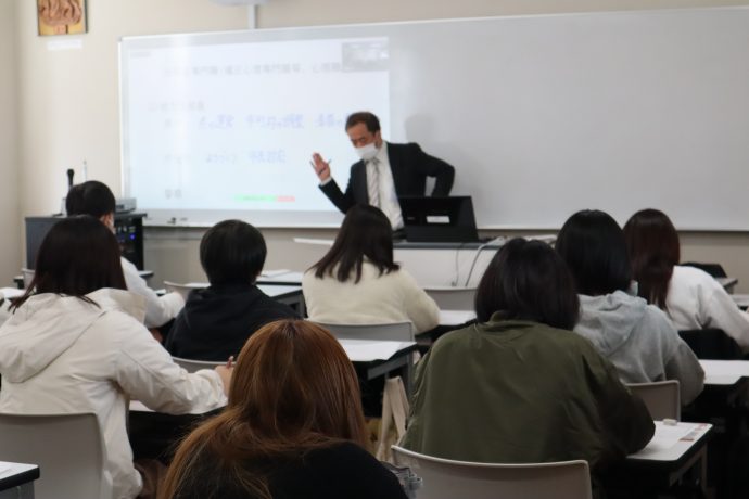 2021年12月6日(月)1年生対象の教職キャリアガイダンスの授業内にて「公務員ガイダンス」を実施しました。