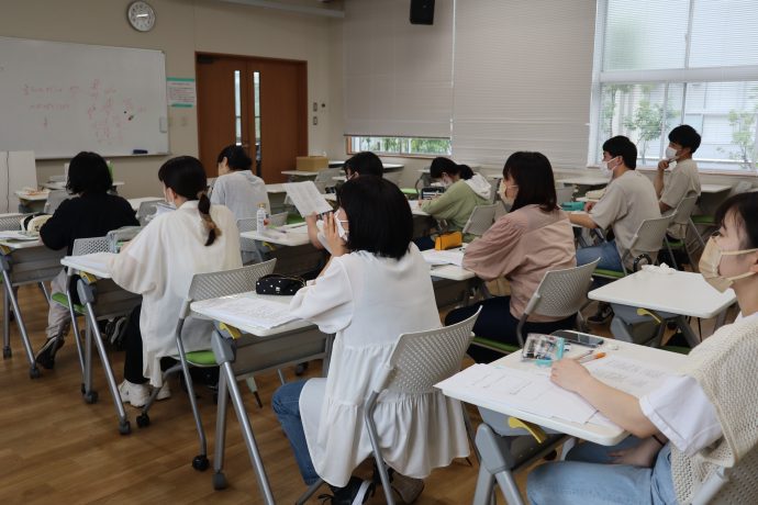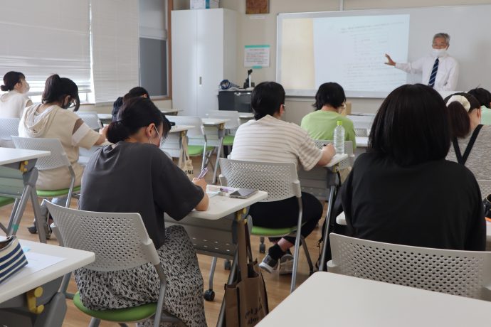 主に公立の保育士・幼稚園教諭を目指す4年生を対象に当講座を行いました。本学の外部連携機関でもあるLEC和歌山駅前校より外部講師をお招きし、教養試験の範囲(数的処理・文章理解・社会科学・人文科学・自然科学)の5分野の演習を中心にポイントを押さえながら教えていただきました。