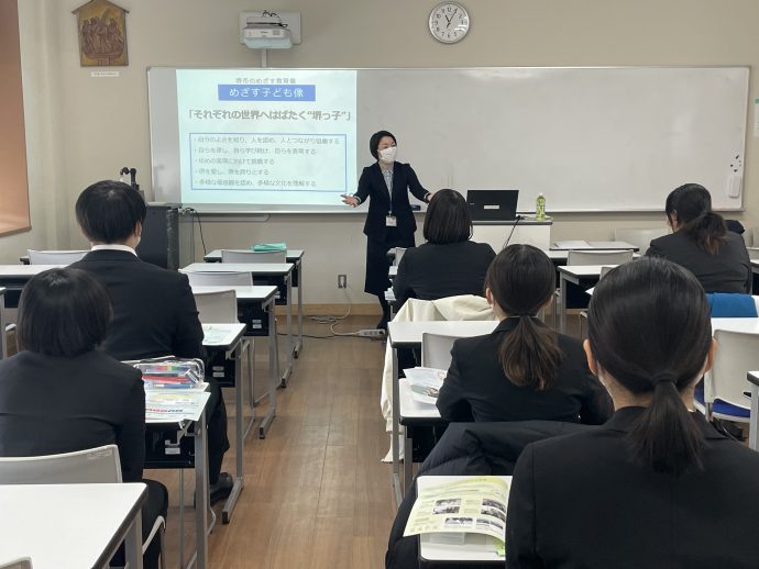2022年12月15日(木)3年生の教員志望者を対象に堺市教育委員会の方をお招きし、教員採用試験説明会を実施しました。