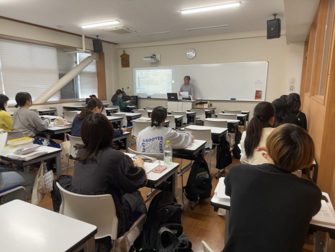 2024年4月22日(月)より、本学の主に3年生を対象に「公務員対策講座」がスタートしました。第1回目の本日は、主に地方公務員の事務職や公立保育士を目指す20名程の学生が参加しました。