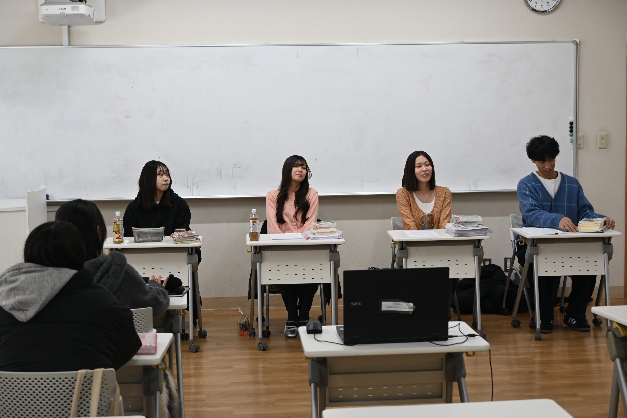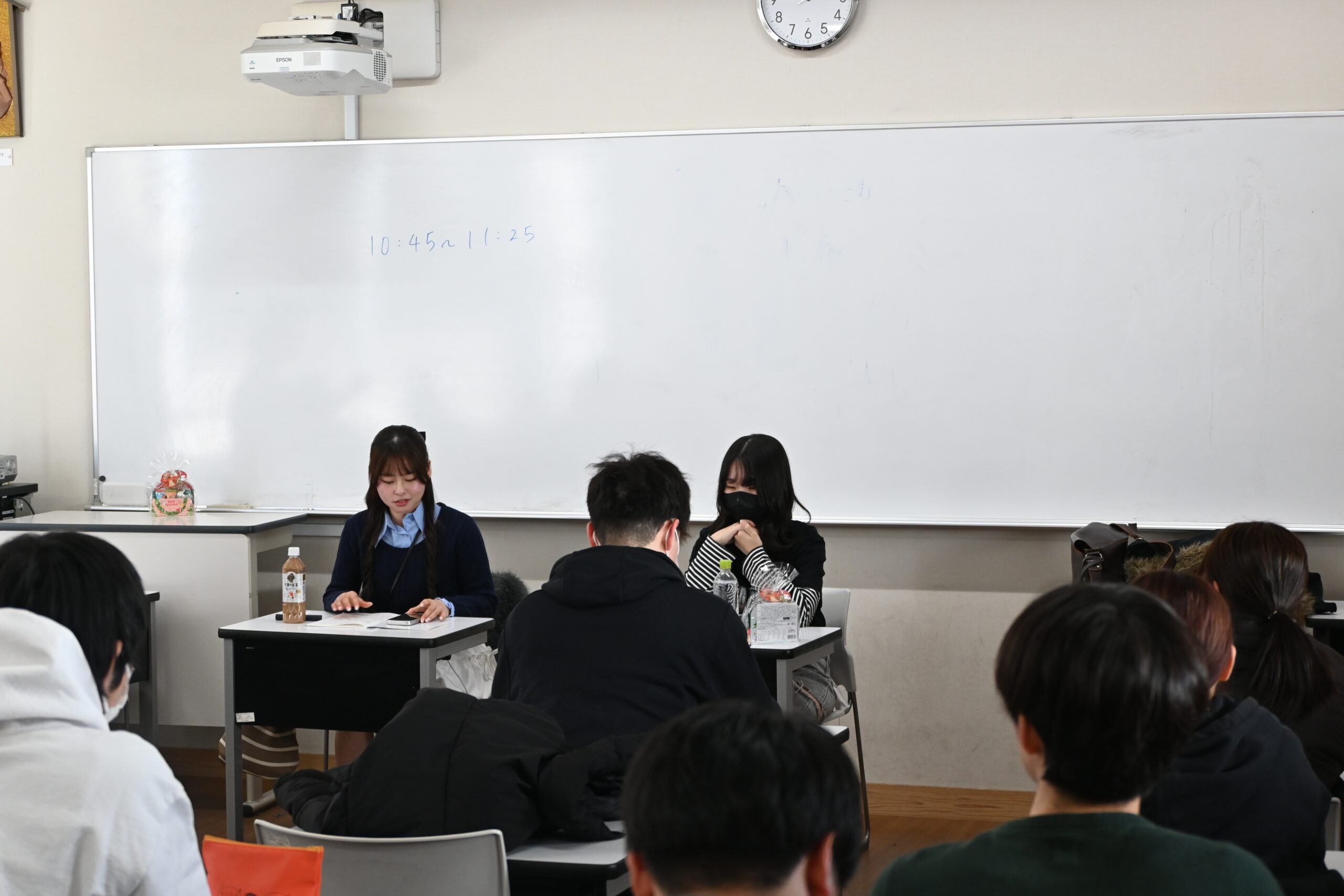 教員採用試験や公立園・私立園、一般企業や公務員試験などの就職活動を終えた4年生の代表者が、採用試験や就職活動の体験談を後輩たちのために報告してくれました。