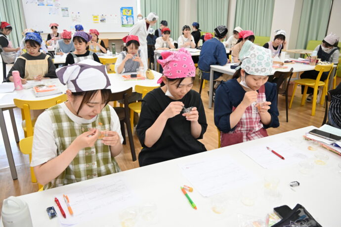 2025年7月3日(木)【子どもの食と栄養Ⅰ】の授業で「調乳・離乳食試食会」が本学の学生ラウンジで行われました。