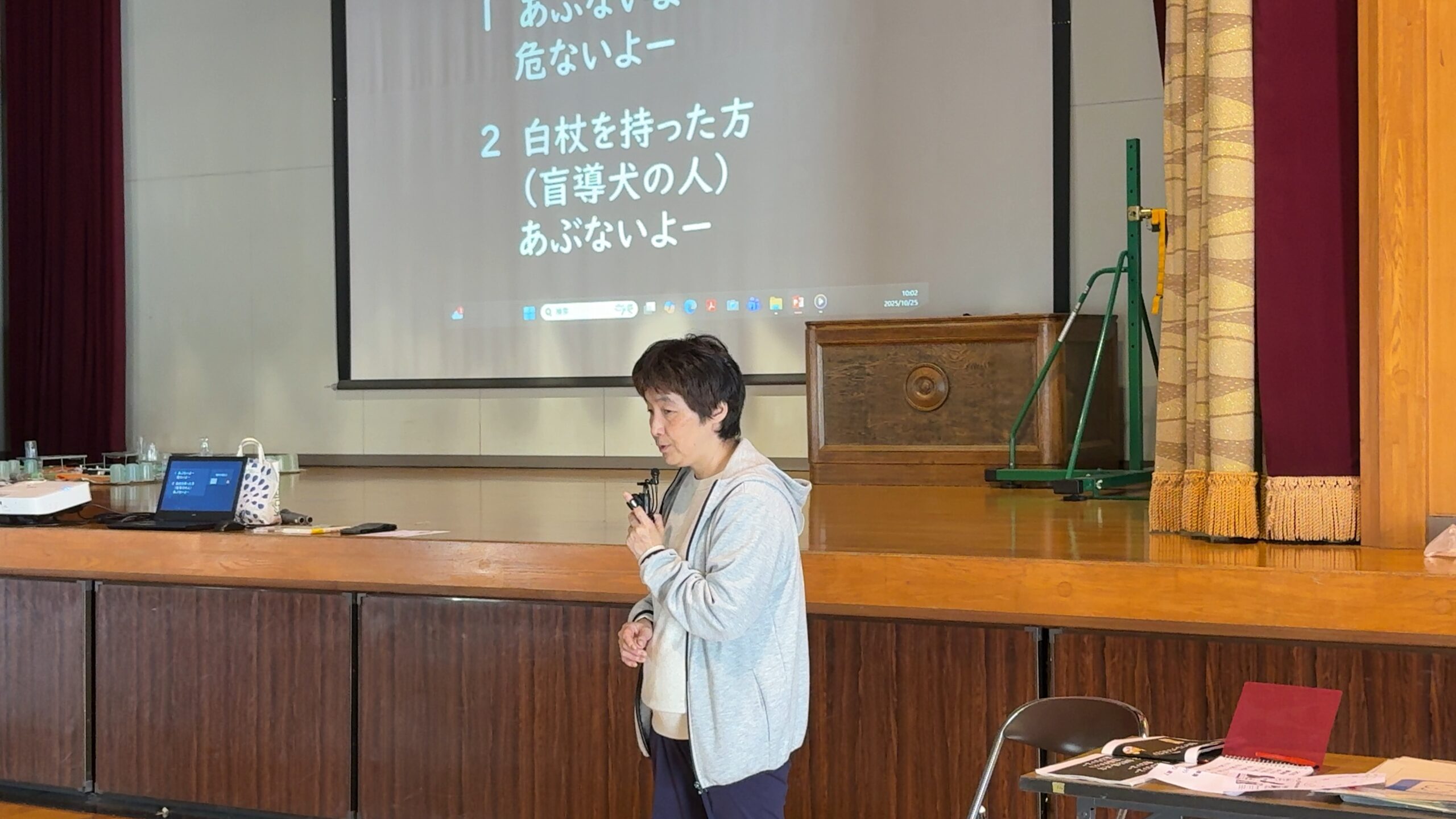 第一部では、視覚障害がある方の日常生活や感じ方、支援方法について、第二部では歩行を支える「盲導犬」について学びました。