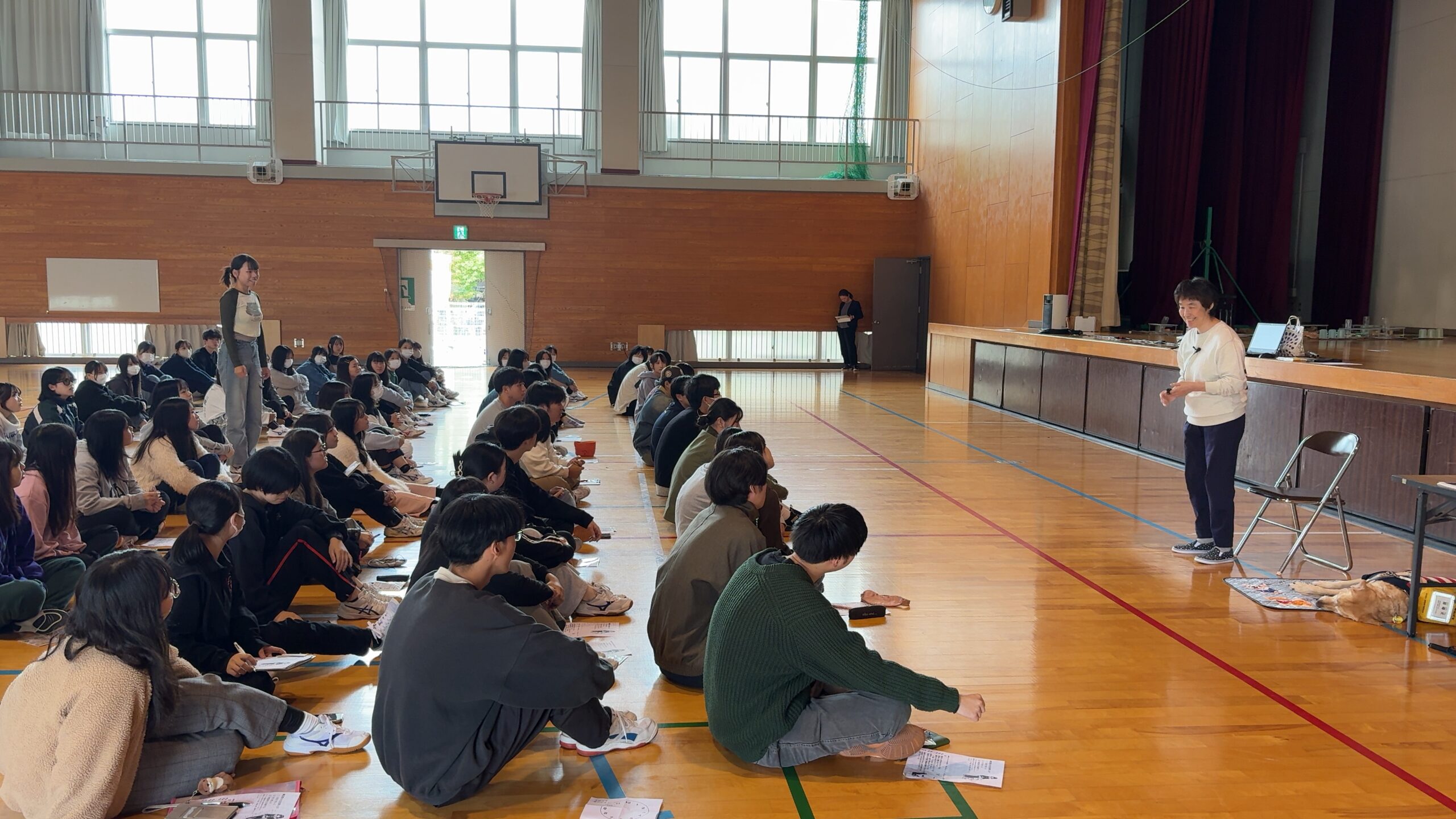 廣木先生の呼びかけに、盲導犬がしっかり応答する様子に、学生から驚きと感心の声が上がりました。