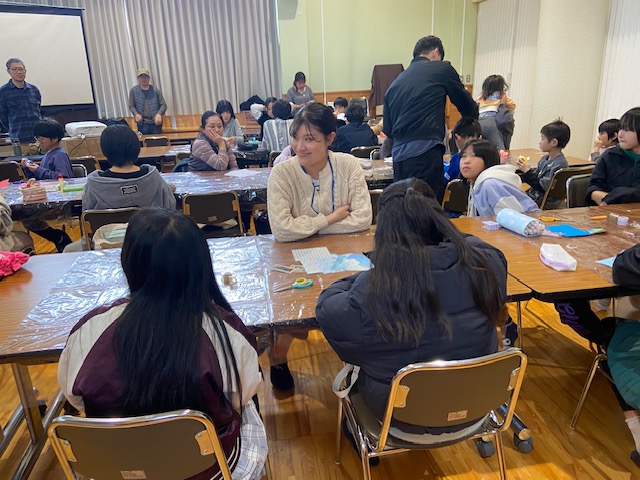 栞の製作やポスター制作、プレゼント交換やゲームなど、地域の子どもと保護者の方々と楽しい時間を過ごしました。