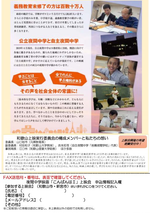 主催:夜間中学映画「こんばんはⅡ」In 和歌山上映実行委員会
