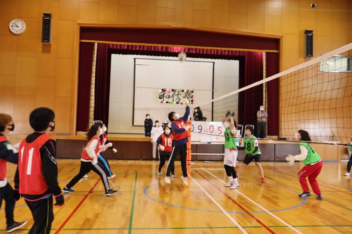 体育館と教室をZoomでつなぎ、リモート観戦、リモート鑑賞と、工夫を凝らして行いました。バレーボールから始まり、舞台発表、ドッチボール、抽選会と他学年と交流できる内容を詰め込みました。
