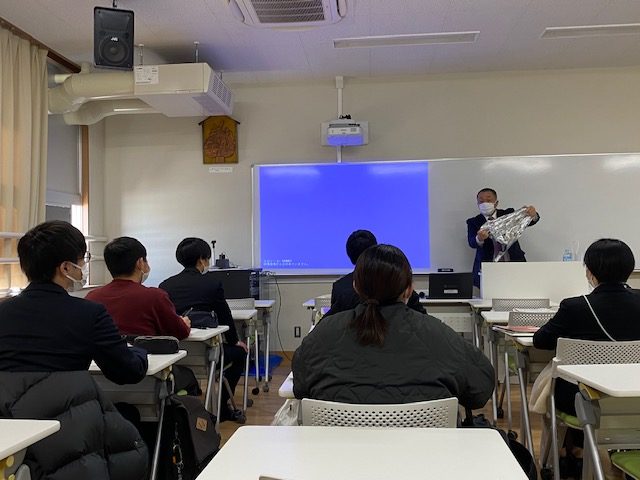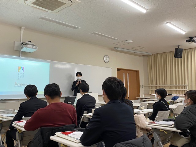2023年1月17日(火)3年生の企業就職希望者を対象に第2回学内企業説明会を開催しました。わかやま若年者地域連携事業推進センターのご協力のもと、今回は「株式会社インテリックス」「株式会社小久保工業所」「株式会社紀州ほそ川」の和歌山県内の優良企業3社にお越しいただきました。