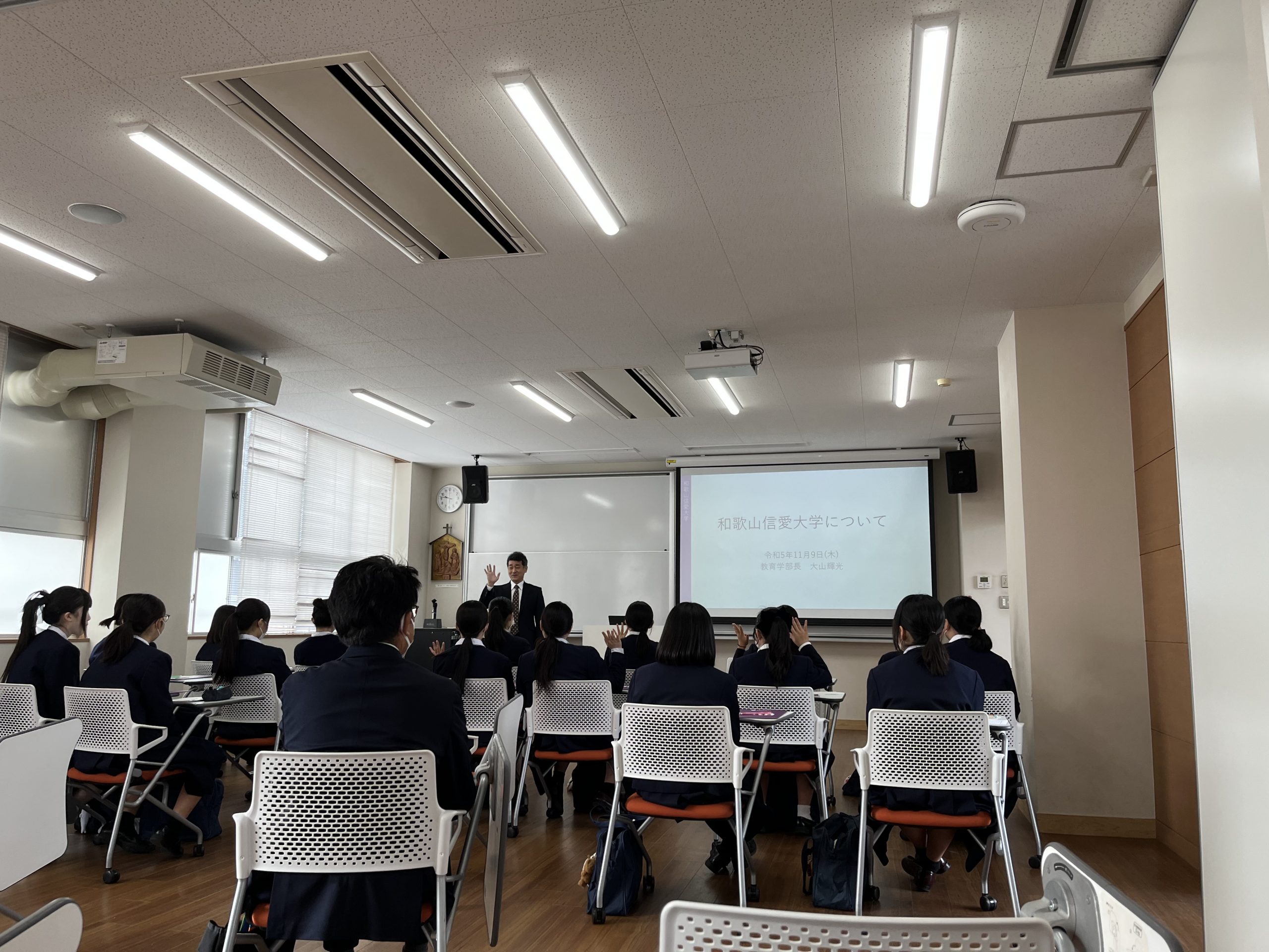 2023年11月9日、和歌山信愛高校1,2年生向けの就業(教員)の仕事に関する説明会を行いました。内容は下記の通りです。