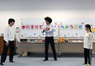 2024年2月27日、和歌山市こども総合支援センターで行われている「本町子育てパーク」で、1年生3名が保育プログラムの実践を行いました。先週に続き2回目で、初回の反省を生かして実践しました。本番は、笑顔あふれる温かい雰囲気に包まれ、みんなが笑顔でした。学生へのアドバイスや緊張している学生に「大丈夫」と励ましてくださる先生方、温かく見守ってくださる保護者の方に支えられ、無事に終えることができました。学びと実践をつなげる機会を頂き、感謝しています。これからもよろしくお願いいたします。