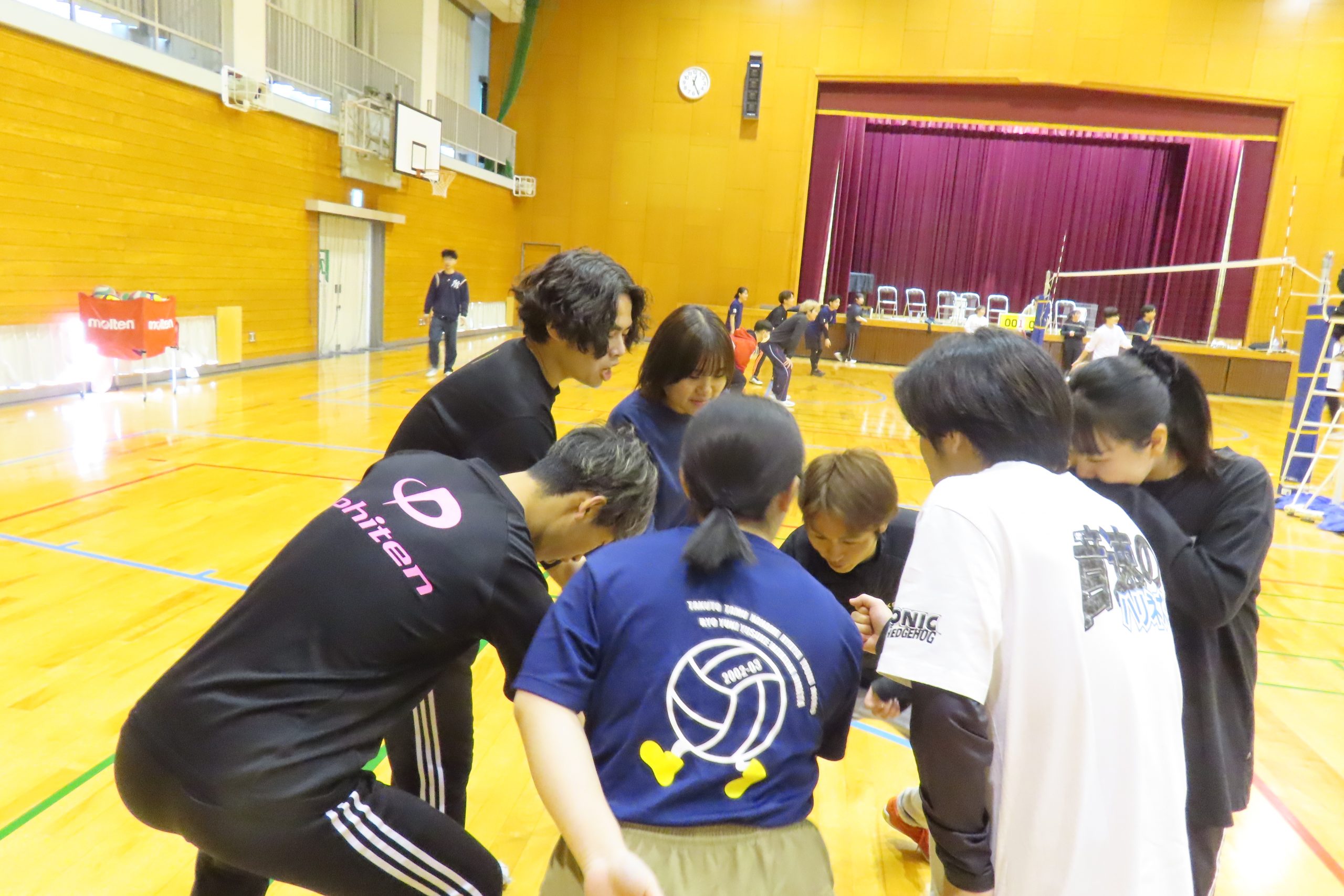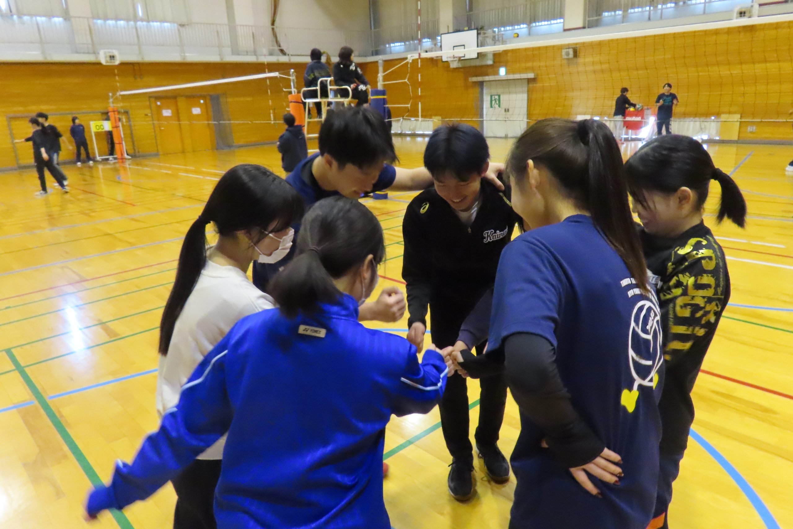 2024年3月9日(土)、体育館にて、第3回春のバレーボール大会~2期生を送る会🌸~が行われました!今大会も40名以上のバレーボールサークルの学生が参加し、6チームの総当たり戦となりました。外はまだ少し肌寒かったですが、体育館の中はバレーボールサークルの熱いプレーとサークルメンバーや教職員の熱い応援でとても暖かく感じられました。チームを越えて4年生(2期生)が後輩にアドバイスをしたり、良いプレーをお互い称え合ったり…。「感謝の想いをボールに込めて」心温まる1日となりました。