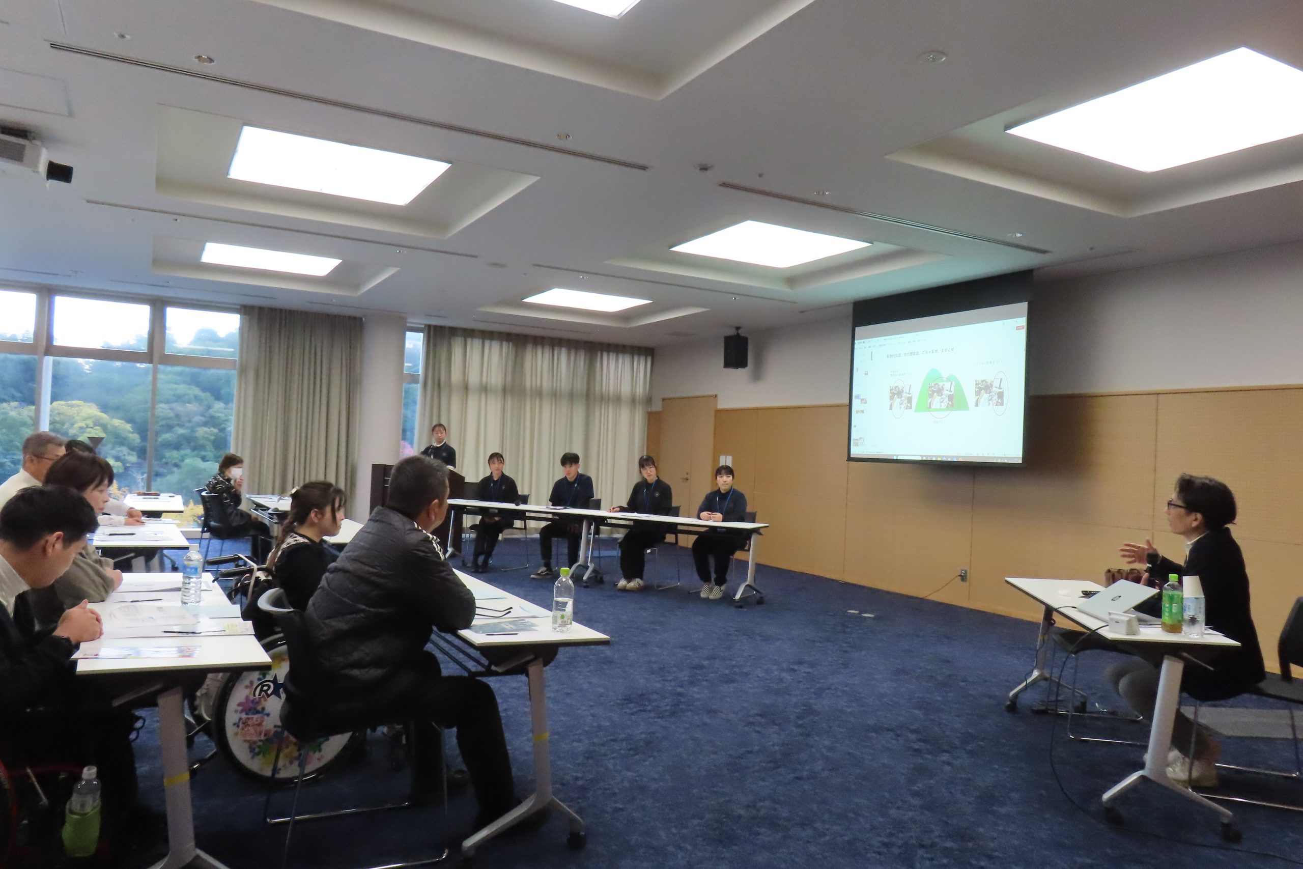 2024年11月24日(日)、和歌山城ホール4階大会議室にて、和歌山信愛大学と和歌山県、及び(公財)和歌山県人権啓発センターとの共催事業として、大学生主体による人権啓発イベント「地域の中の誰もの居場所~私もこども食堂へ行っていいの?~」が開催されました。村上凡子教授のゼミ生と原康行准教授のゼミ生が主体的に企画運営した人権啓発イベントは第3回目を迎え、今回は50名を超える方々にご参加いただきました。