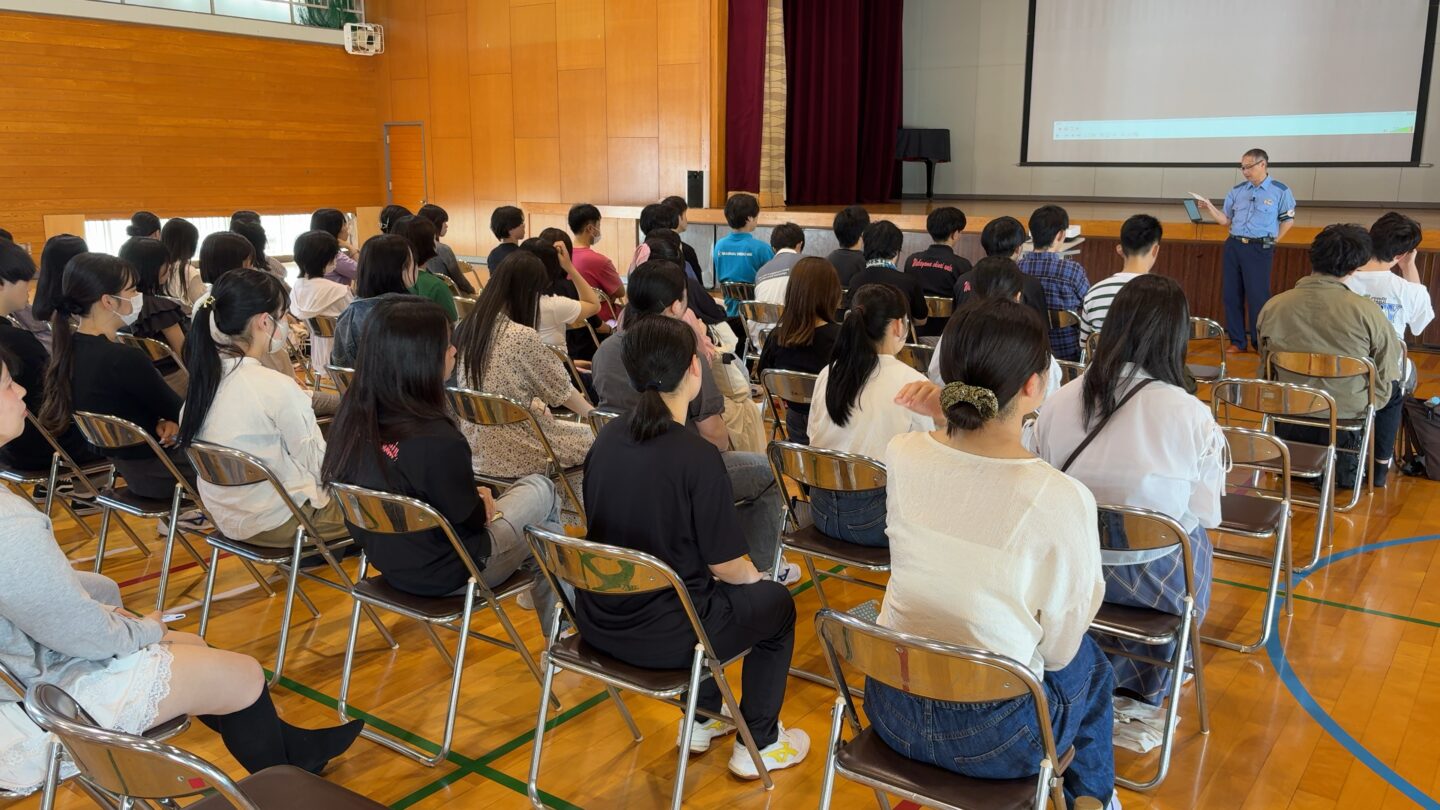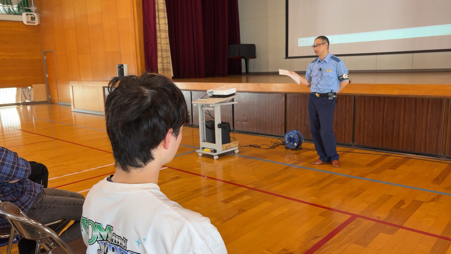 2025年5月20日(火)の1限目に、講師として和歌山県警西署交通課の田村巡査部長をお招きし、交通安全講習会が開催されました。交通事故の現状についての報告や、交通事故を減らすための留意すべきことなどについて学びました。交通ルールを守ることを通じて規範意識を高めていきたいです。授業の関係でこの日は3年生のみ。次回2025年6月19日(木)は、他の学年を対象に実施します。