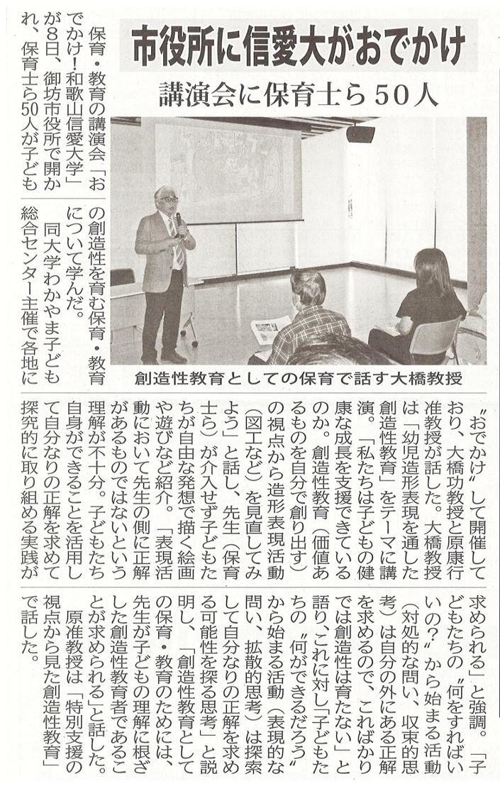 「おけかけ!和歌山信愛大学」は、地域の皆さんとのつながりを深め、和歌山の保育と教育を共に支えていくきっかけ作りとして、和歌山信愛大学「わかやま子ども学総合研究センター」が、各自治体の皆様と共催しています。