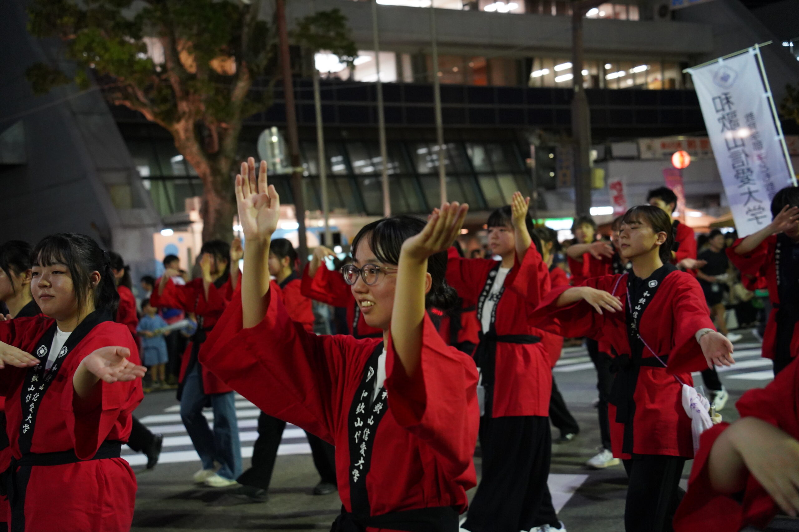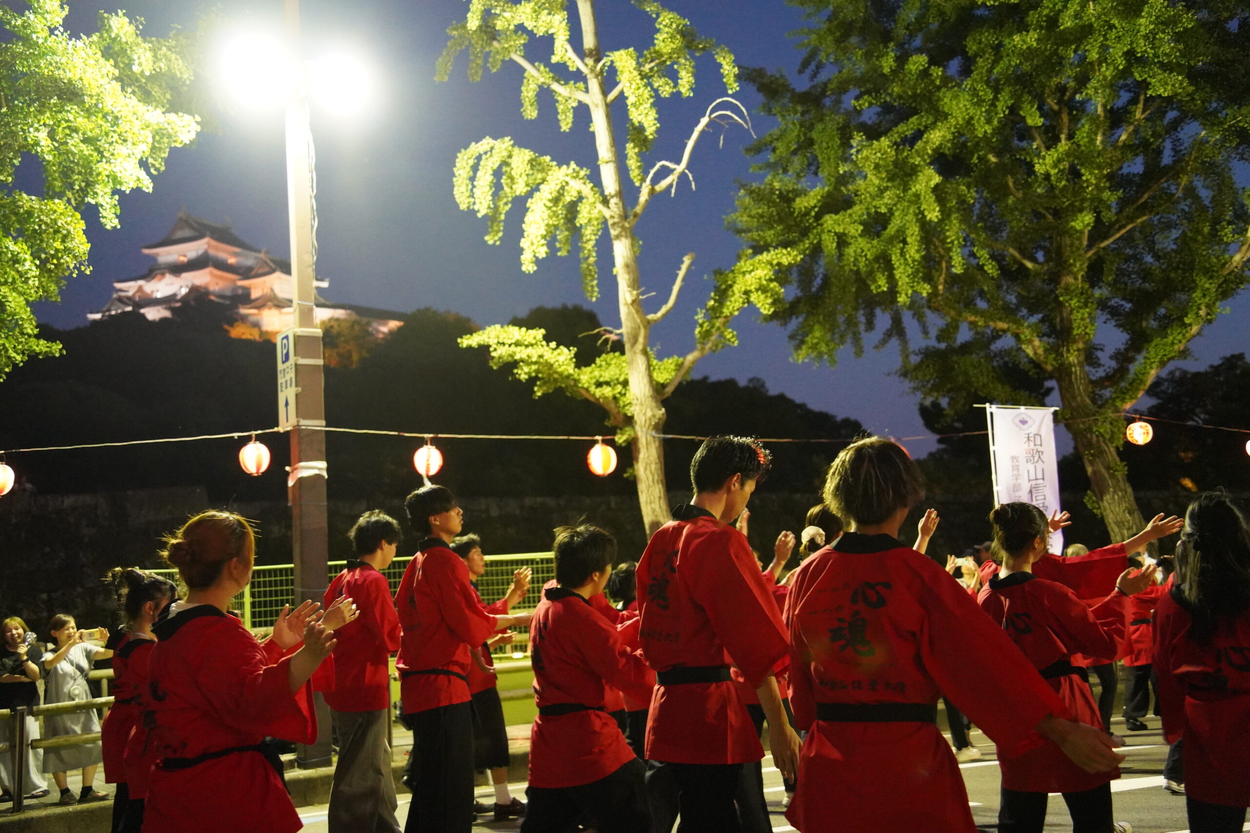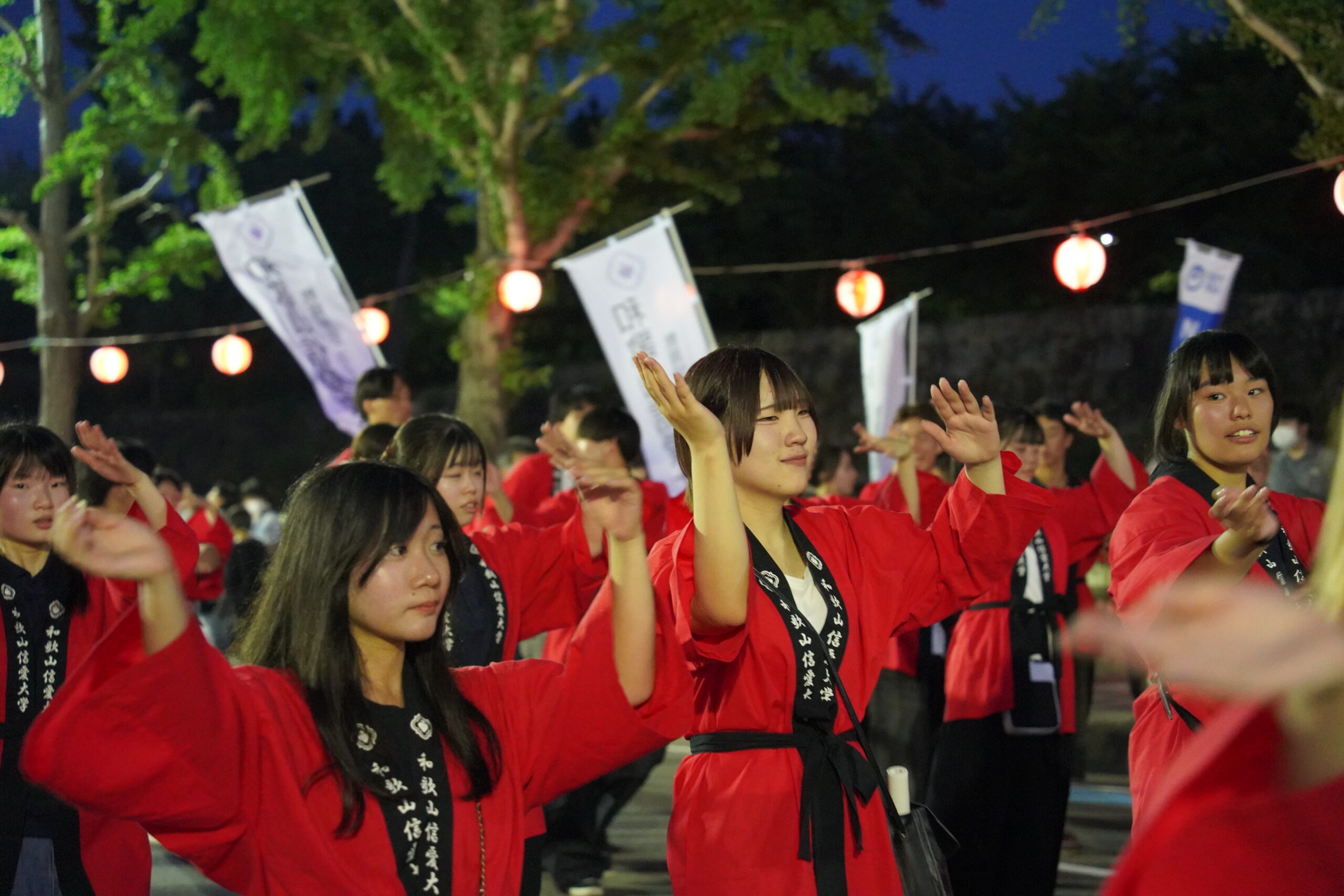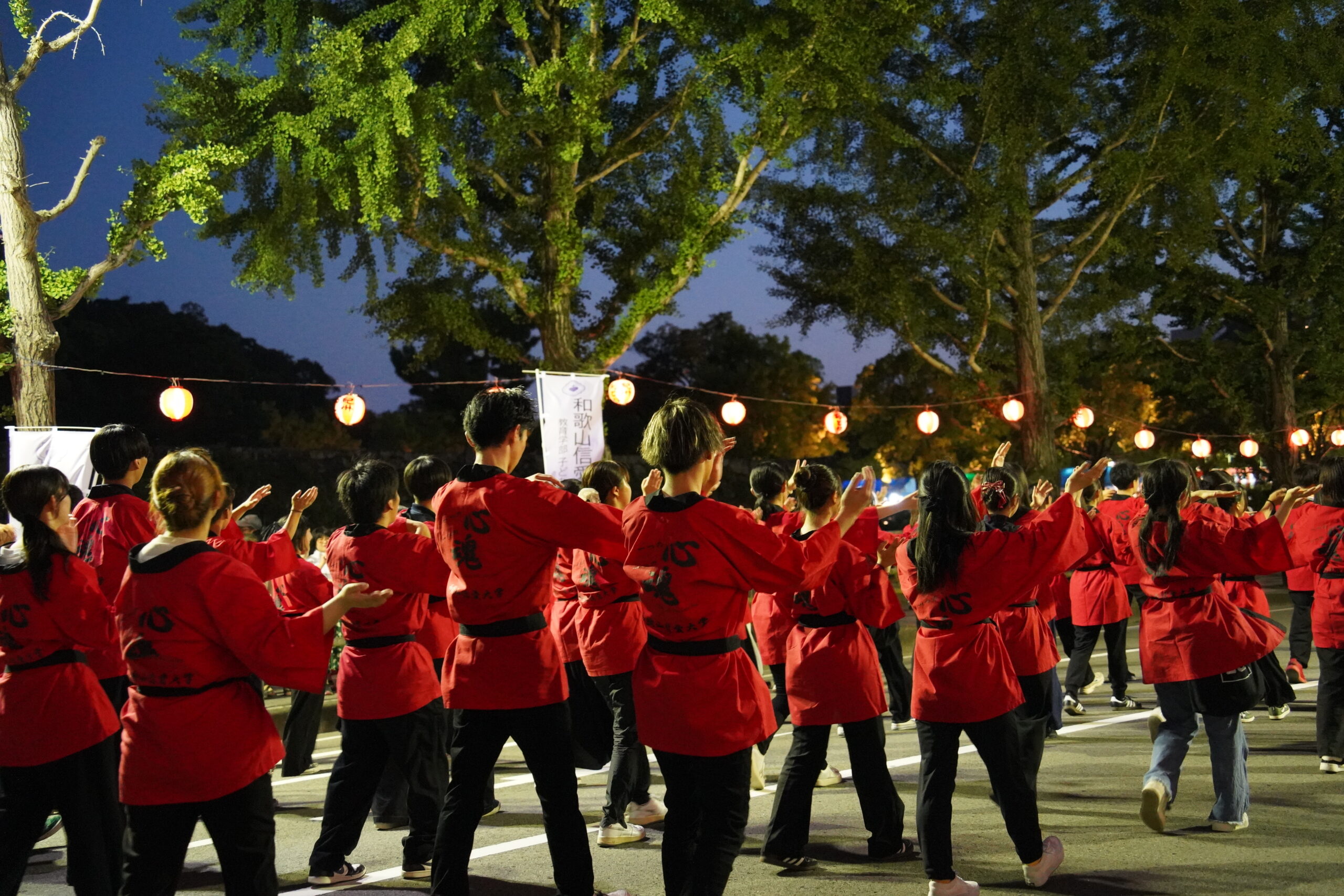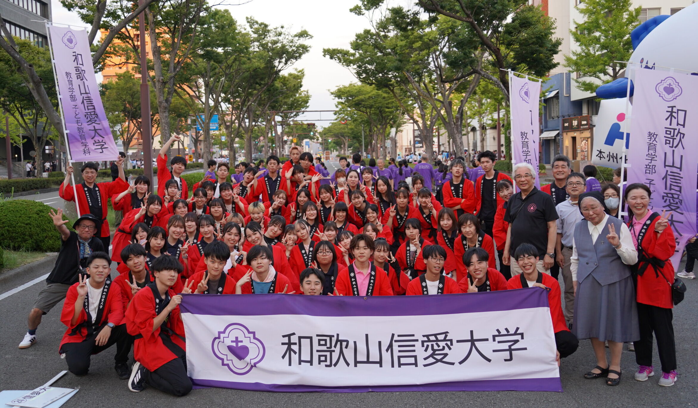 2025年8月2日(土)、本学1年生65名が、57回紀州おどりぶんだら節」に参加しました全員がおそろいの赤いはっぴに着替え、大学から会場まで歩いて向かいました。