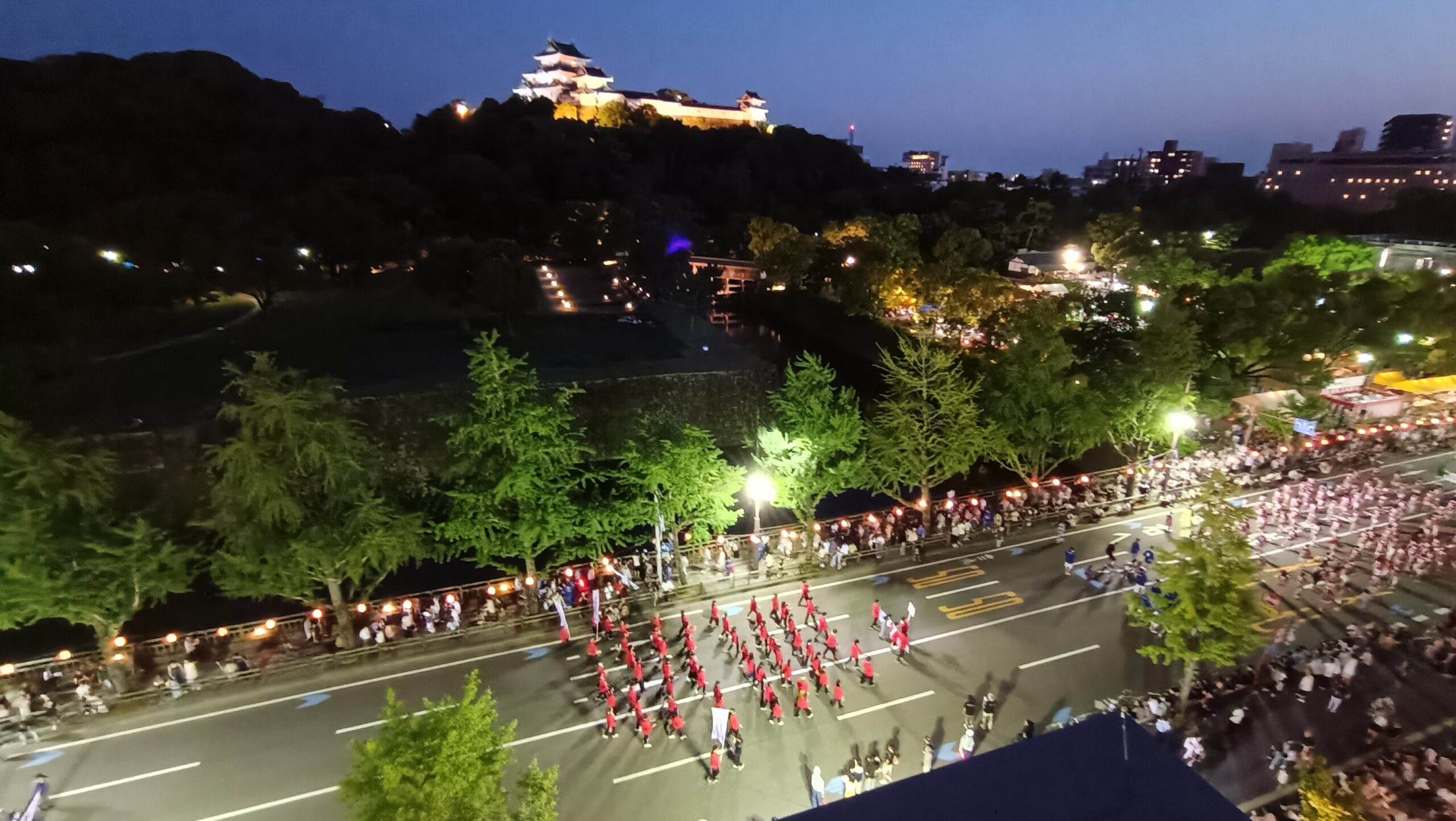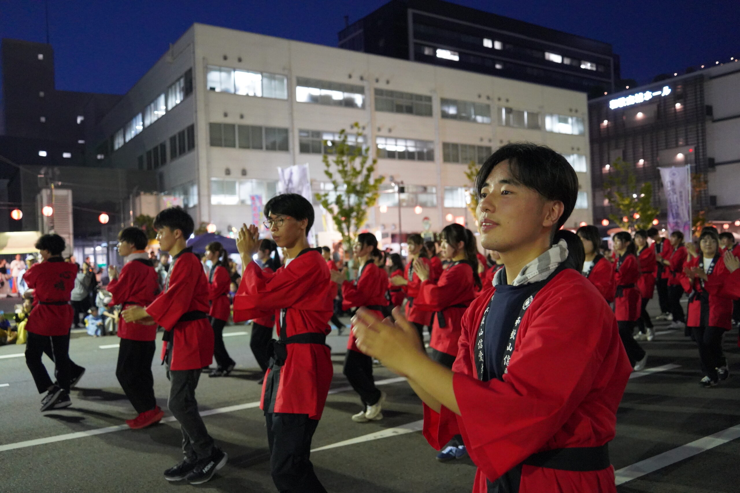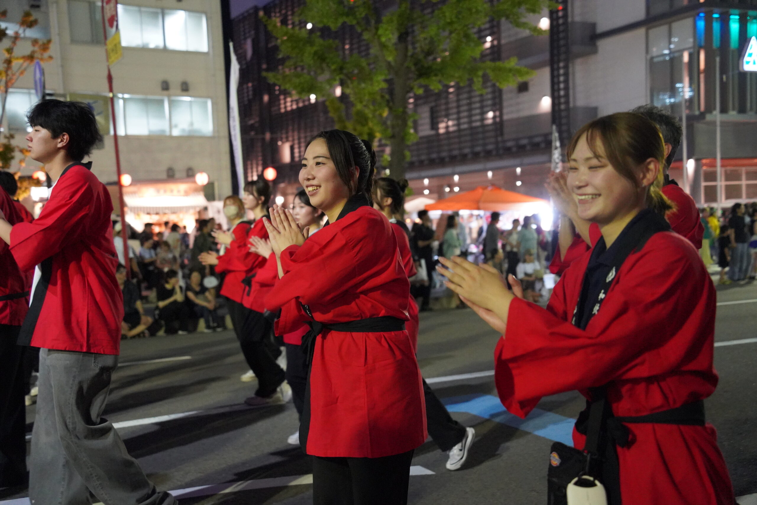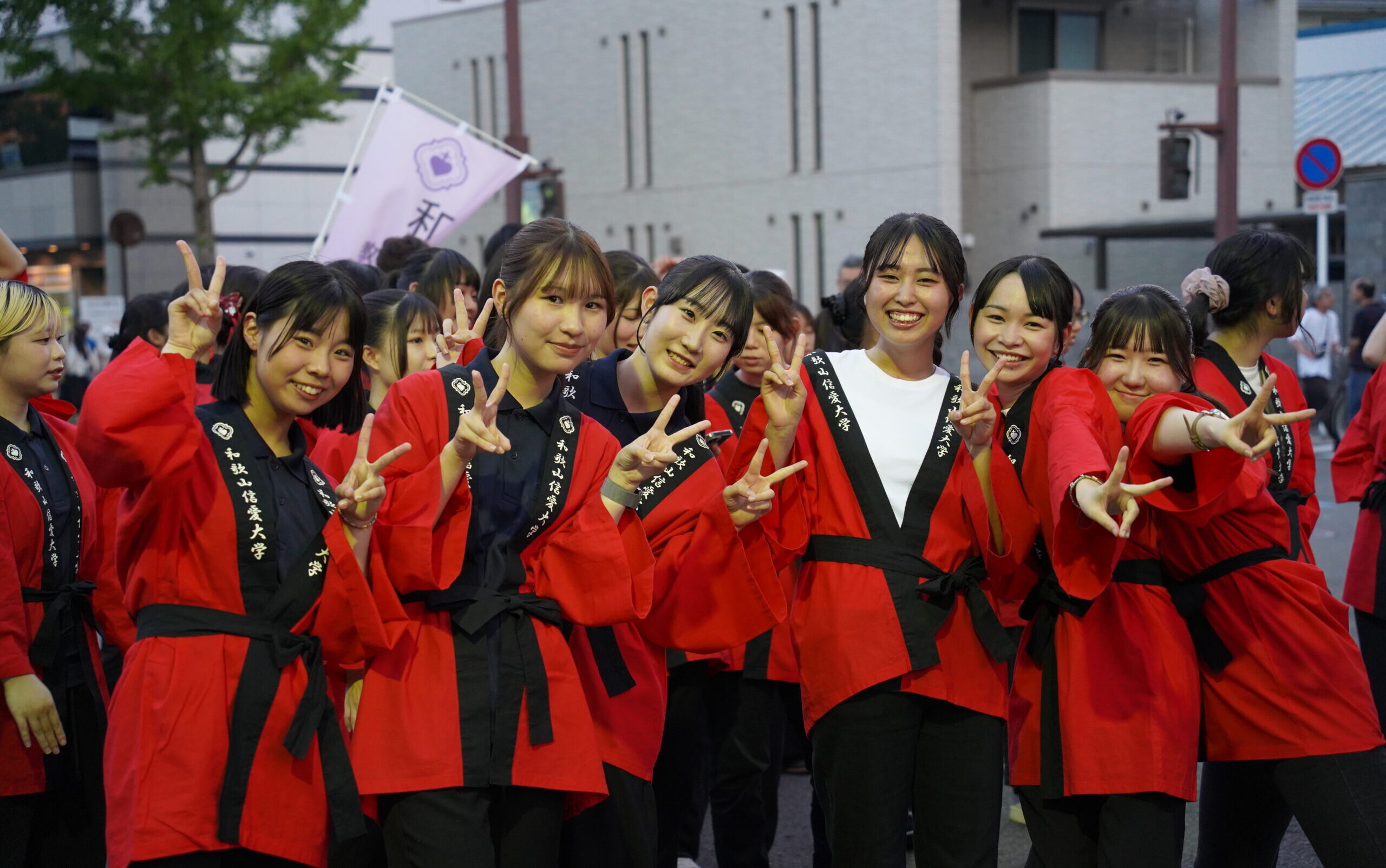 スタート地点には、学長先生も応援に駆けつけてくださり、一緒にご参加くださいました。驚くぐらいの暑さでしたが、練習の成果が発揮され、ゴール地点まで全員が若さあふれる力強い踊りを披露できました。沿道の皆さんからはたくさんの声援と拍手をいただき、今年は入賞できるかもしれないと期待がふくらみました。