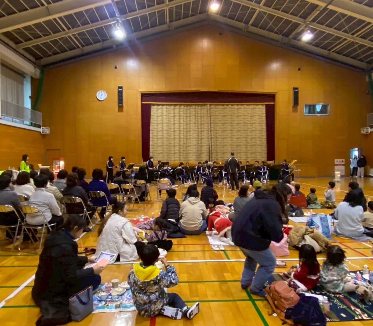 本学2年生の授業科目「地域連携フィールドゼミナール」の一環として、宮定ゼミの学生が企画・運営に協力し、準備を重ねて当日を迎えました。当日は、140名を超える地域の皆さまにご来場いただき、和歌山県立和歌山商業高等学校吹奏楽部とイングリッシュハンドベルサークル「もみの木」の皆さんの演奏により、会場は一気にクリスマスムードに包まれました。