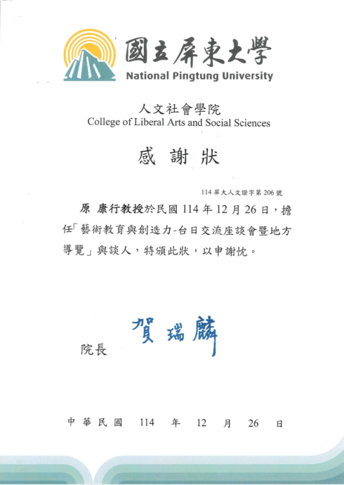 屏東大学の人文社会学院、教育学院と共に「創造力」をいかに育むかについてシンポジウムを行いました。