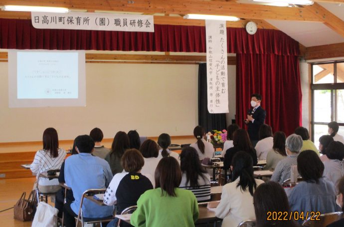 2023.05.01 研究者情報 原康行准教授が、日高川町保育所(園)研修会で講演を行いました。 2023年4月22日(土)、原康行准教授が日高川町の全保育士を対象とした研修会で講演を行いました。 日高川町は、原准教授とともに7年前から町内保育所の保育の質の向上と子どもたちの豊かな育ちを支える取り組みを進めています。 原准教授は、子どもたちの「たくさんの活動機会」が主体性を育み、その頑張りを保育士が「褒める」だけで、子どもたちは多くのことを自ら身につけると話しました。 一覧に戻る