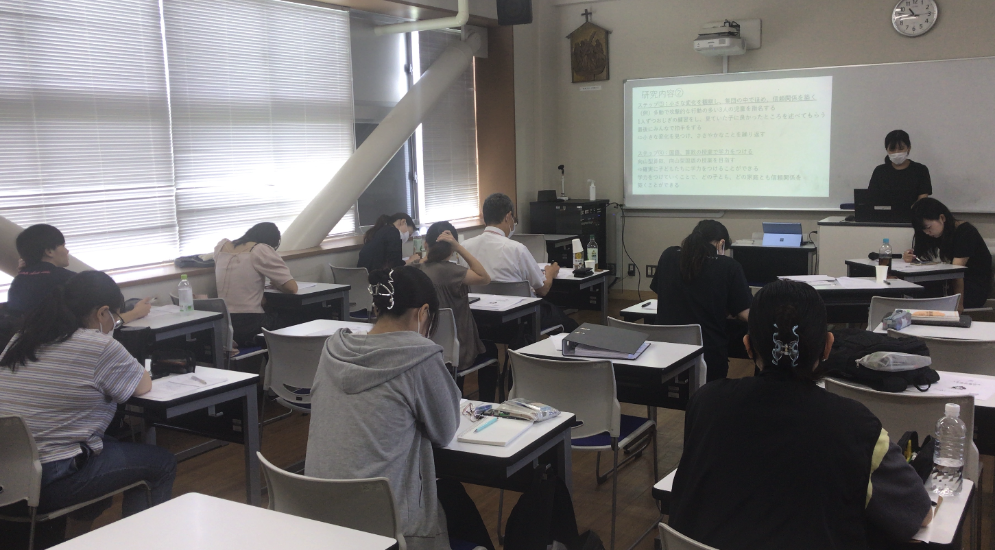 2024年8月26日(月)、原 康行ゼミ4年生6名が、卒業研究 中間指導会を行いました。司会を務めた中尾伊吹さんが「これまでの研究経過、成果を報告させていただきます。たくさんのご意見、ご指導をいただき、更に研究を良いものにしたいと思います。」と挨拶しました。指導には、本学 前島美保 助教、八代健志 准教授も加わり、それぞれの専門分野からご指導いただきました。「小学校児童における自己肯定感の現状分析と高める支援」について研究を進める森下木葉さんは、「自己効力感」「自己有能感」など、類する用語の定義を先行研究からまとめ、海外の子どもとの比較から問題の所在を明らかにしました。1月の卒業研究論文の完成に向け、研究活動は夏季休業中も続きます。