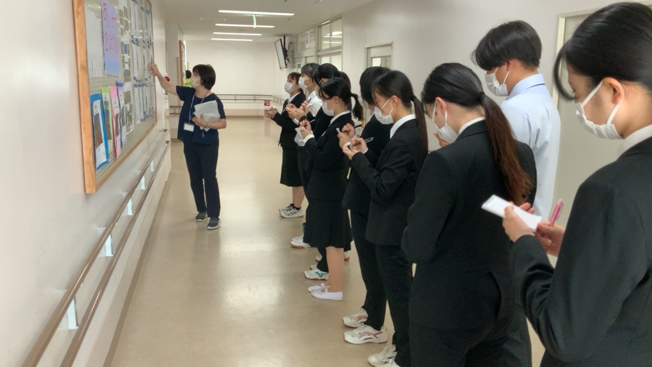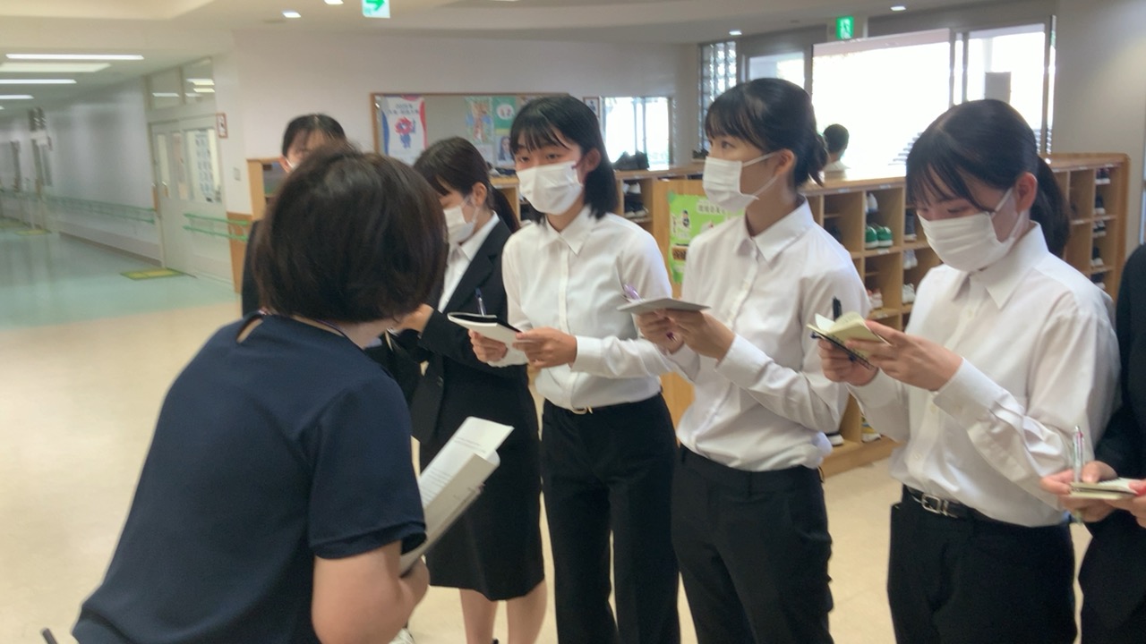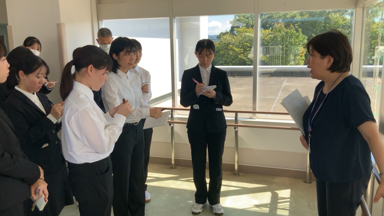 2グループに分かれ、肢体不自由学級、知的障害学級、自立活動の指導等の様子を見学しました。教頭先生は、各棟の見学後「今の見学で気になったこと、疑問はありますか? 質問どうぞ。」と声をかけてくださり、学生からは、率直な意見や質問が多く出されました。