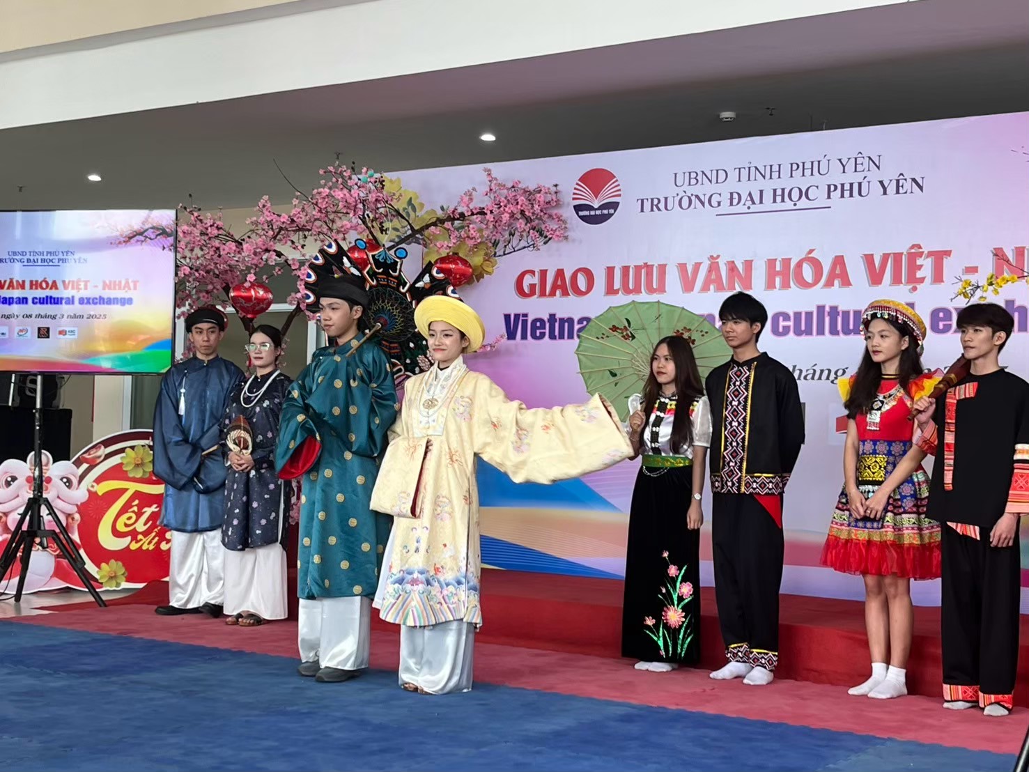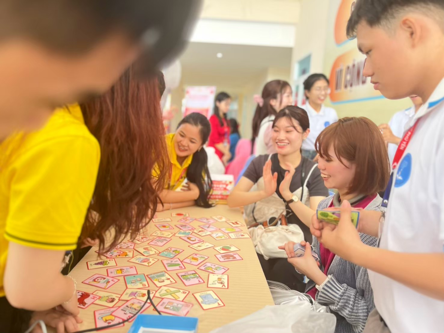3日目の文化交流イベントでは、信愛大学生は1・2年生チームによる「ドラえもん音頭」、3・4年生チームによる「ソーラン節」の舞台発表を行いました。また、フ―イエン大学生の皆さんには、ベトナムの民族衣装の紹介や、伝統的な歌や踊りの発表等、たくさんの芸術・音楽パフォーマンスを見せていただきました。両大学生が一緒に互いの歴史や文化を体感できる素晴らしい時間を過ごしました。舞台発表後は、ブース形式に分かれ、信愛生は日本文化の体験ブース(けん玉・コマ回しチャレンジ、かるた大会等)を行い大変盛況でした。