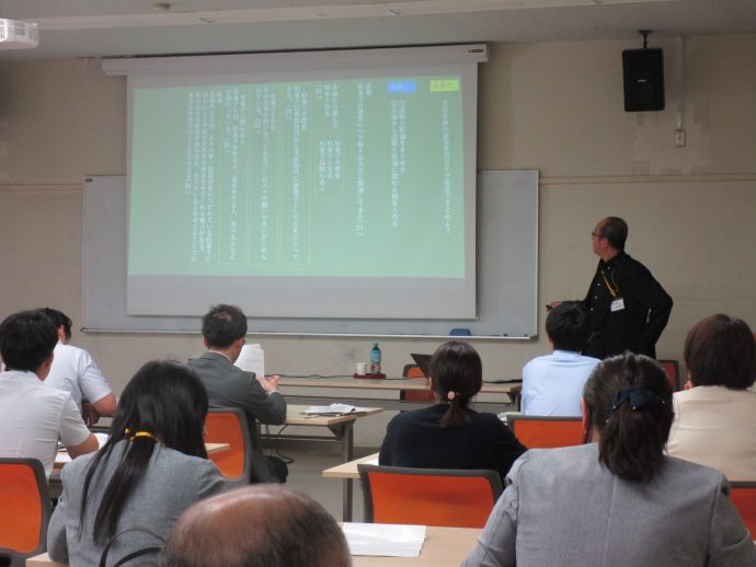2024.05.20 公開講座 小林康宏教授がきのくに国語の会で講演を行いました 2024年5月18日(土)、小林康宏教授が和歌山大学附属小学校で開催された第86回きのくに国語の会において「言葉による見方・考え方を育て働かせる授業づくりのための教材研究」の演題で講演を行いました。講演の後は、主に和歌山県内の小学校に勤務されていらっしゃる先生方に加え、本学を卒業し学校の先生になった皆さんや、在学生も参加し、教材研究を深めていきました。 一覧に戻る