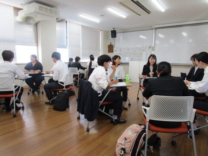 令和6年8月7日(水)、田辺市立新庄第二小学校の先生方が来学され、国語科の授業づくりの研修会を行いました。授業づくりで大切にしたいことや、「みきのたからもの」(光村2下)「友情のかべ新聞」(光村4下)の教材研究や授業づくりについて研修しました。本学からも2年生から4年生までの学生が参加し、授業づくりについて学びました。また、先生方と懇談をする時間を取って頂き、目前に迫る教育実習で大切にしたいこと、社会人として大事なこと、保護者対応の実際等について現職の先生方からたくさん教えて頂きました。