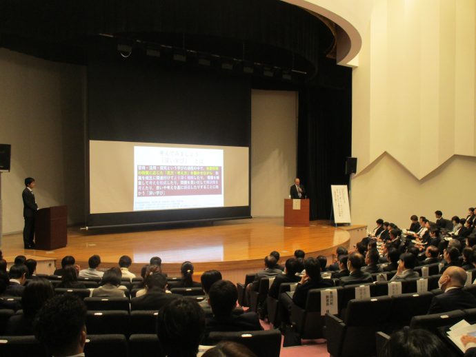 令和6年11月1日(金)、和歌山県有田川町吉備ドームで行われた有田地方教育委員会連絡協議会指定事業に係る研修会(全体会)において、小林康宏教授が「見方・考え方を大切にする授業づくり」の演題で講演を行いました。当日は、令和4年度から研究・実践を進めてきた有田川町立藤並小学校の全学級公開授業があり、その後、全体会が行われました。藤並小学校の先生方による研究概要説明、クロストークセッションと併せ、小林康宏教授の講演がありました。『見方・考え方』は文部科学省が9月に発表した「今後の教育課程、学習指導及び学習評価等の在り方に関する有識者検討会 論点整理」で次期指導要領における5大コンセプトとして示された事柄のうちの一つにもなっているように、授業改善を図る上での大切なポイントです。有田地方の先生方をはじめ、西牟婁郡、海南市から来られた先生方と共に、『見方・考え方』を働かせ、育てる授業の在り方について学び合う機会となりました。