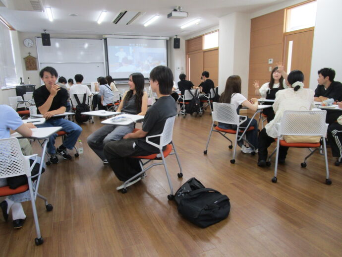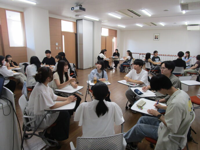 2025年7月26日(土)、本学の卒業生で構成される言葉の学びに関する研修組織「椰子の木会」の第3回目の研修会が1号館2階中講義室Ⅰで開催されました。3,4年生も加わった研修会では、『ことば』を育てることを観点として、幼児期の子どもの表現力の育成、特別な支援を必要とする子どもに対する支援等をはじめとして、校種を超えた多様な事例が紹介され、活発な意見・情報交換が行われました。
