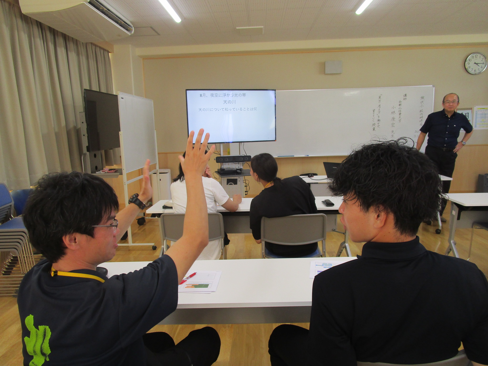 2025.09.18 研究者情報 小林康宏教授が島根県出雲市の小学校で講義・演習を行いました 令和7年9月16日(火)、島根県出雲市立旅伏小学校において、小林康宏教授が「『見方・考え方』を働かせる授業づくり」のテーマで講義・演習を行いました。学習者と教師が自覚的に「見方・考え方」を働かせていくための基本的な授業展開について、模擬授業形式で学び合いました。当日は8学級の授業も参観させて頂きました。3連休の翌日でしたが、先生方の分かりやすく、楽しい授業により、生き生きと学ぶ子ども達の姿が印象的でした。 一覧に戻る