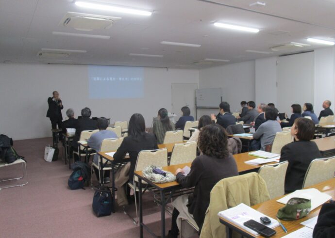 2026.01.21 研究者情報 小林康宏教授が大阪府の国語の先生方に講演を行いました 令和8年1月20日(火)、大阪府小学校国語科教育研究会令和7年度 大阪府小学校国語科教育研究会 第2回研修会において、小林康宏教授が「『言葉による見方・考え方』を働かせ、育てるために」の演題で講演を行いました。大阪府小学校国語教育研究会の各地区の代表者、理事の先生方と共に、学校現場での一層の広がりが求められる「言葉による見方・考え方」についての理解を深めました。 一覧に戻る