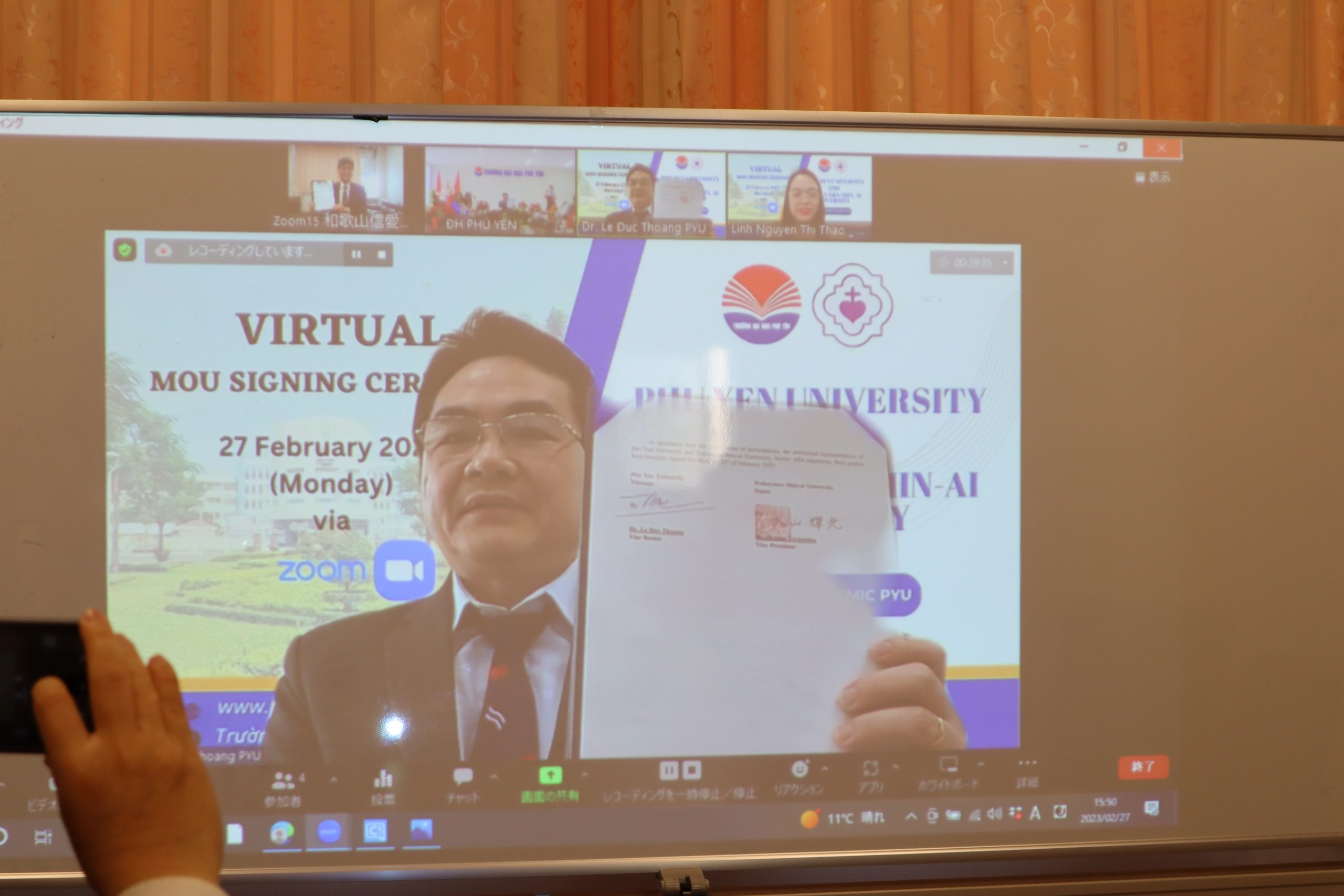 2月27日に本学はベトナムのフーイェン大学と研究や教育面における大学間交流協定を締結しました。両大学には小学校教育や幼児教育を学ぶ課程を有している共通性があります。今回の協定締結にあたっては、2022 年 10 月に和歌山県副知事を団長とする和歌山県ミッション団のベトナム訪問に辻伸幸准教授が同行し、ベトナムの教育機関とのマッチングイベントにおいて、本学の PR を行い、今回の締結に至りました。本交流協定は本学にとって初めての海外の大学との締結です。グローバルな視点から両国の大学や地域に好影響を与えることが可能と考えています。