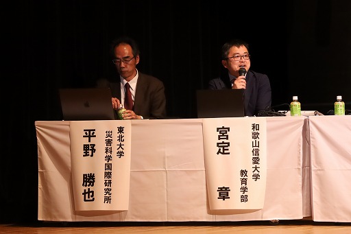 津波被害が想定される和歌山市内沿岸部の住民や自治体の職員などおよそ80人が参加したシンポジウムには、本学から宮定章准教授がパネリストとして登壇し、被災者が住み続けながら復興することの難しさや被災前から被災後の復興を展望することの大切さを語りました。