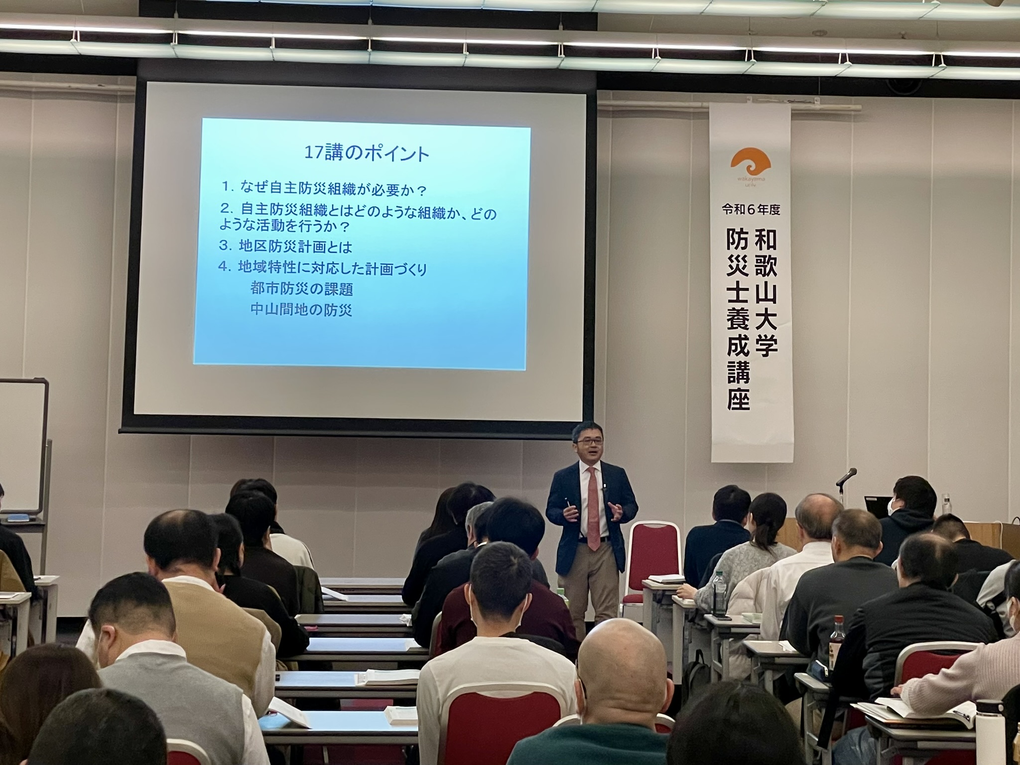 2025.03.13 出張講義 和歌山大学防災士養成講座で宮定章准教授が「自主防災組織と地区防災計画」をテーマに講義を行いました 2025年3月1日(土)、南海浪切ホールにて「自主防災組織と地区防災計画」をテーマに、宮定章准教授が講義を行いました。防災実践活動を行う学生や社会人から、実践的な質問も頂き、和歌山県や大阪府での新たなネットワークが広がりました。 一覧に戻る