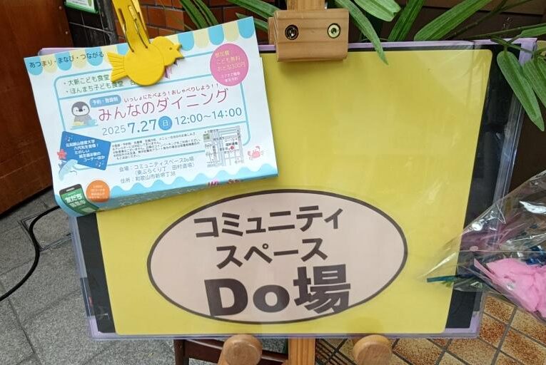 2025年7月27日(日)、宮定ゼミの学生が、和歌山市東ぶらくり丁商店街に新たに開設された地域拠点「コミュニティスペースDo場」にて開催された、大新CLC(コミュニティ・ラーニング・センター)主催(事務局Team MAK-e Spot)の「みんなのダイニング」に参加しました。当日は、地域の子どもたちを対象とした縁日コーナーの運営補助などを通じて、学生たちが地域の皆さまと交流を深めました。会場では、元本学准教授の八代健志先生と在学生が、子どもたちと一緒に歌を楽しむステージもあり、笑顔あふれるひとときとなりました。学生たちは、子どもと接することの楽しさややりがいを肌で感じる貴重な体験を得ることができました。今回の活動を通じて、地域社会とのつながりや実践的な学びの重要性を改めて実感しています。大新CLCの皆さま、そしてご参加いただいた地域の皆さまに、心より感謝申し上げます。